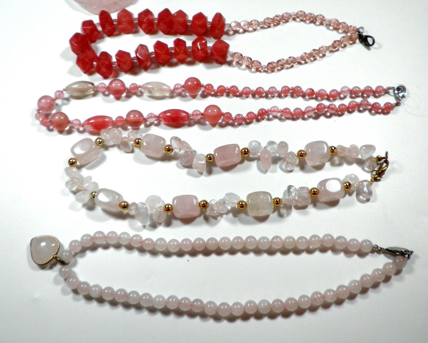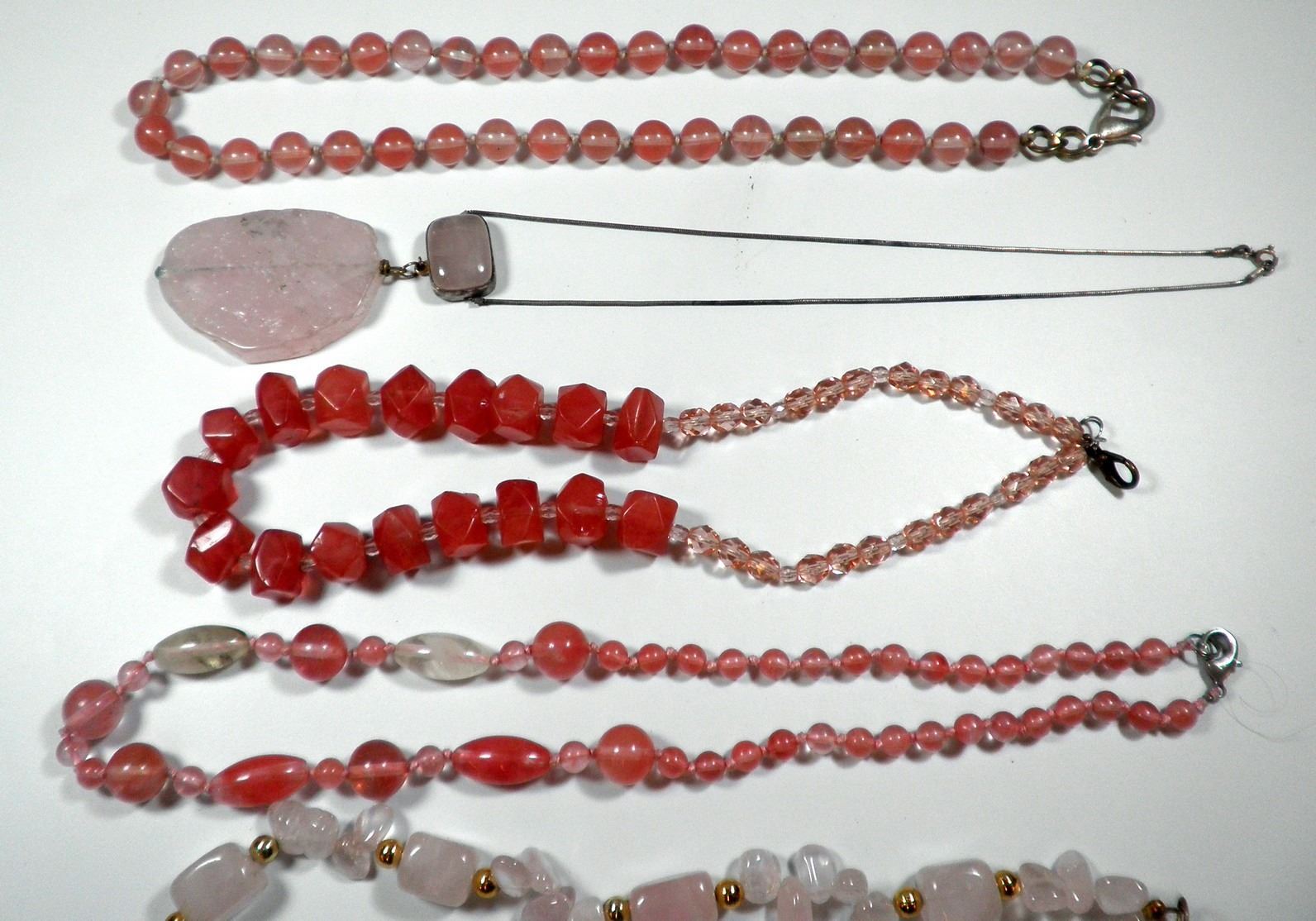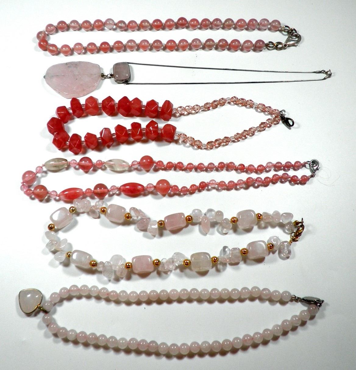 Collection of 6 rose quartz necklaces, length of necklaces: 40-46 cm.