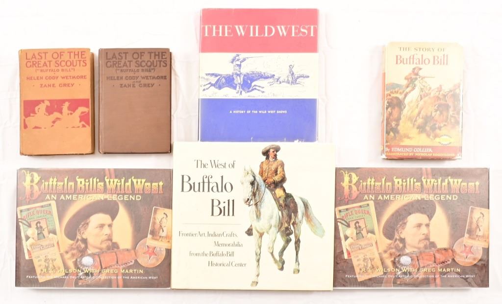Highlights include 2 copies of "Last of The Great Scouts" by Helen Cody Wetmore and Zane Grey. Both are 1918 Editions. 2 copies of "Buffalo Bill's Wild West" one is a 1998 First Edition.