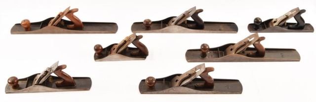 No. 4 1/2 corrugated bottom, No. 5, No. 5 1/2, No. 6, and (3) No. 7 planes, two of which have corrugated bottoms.