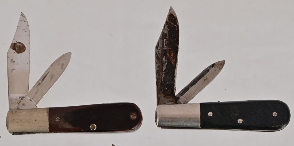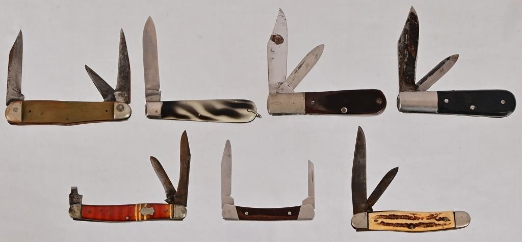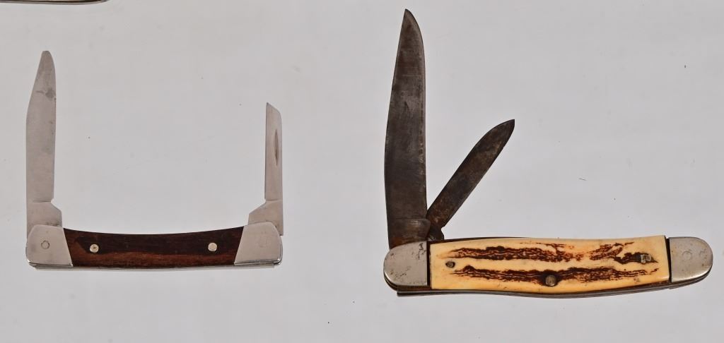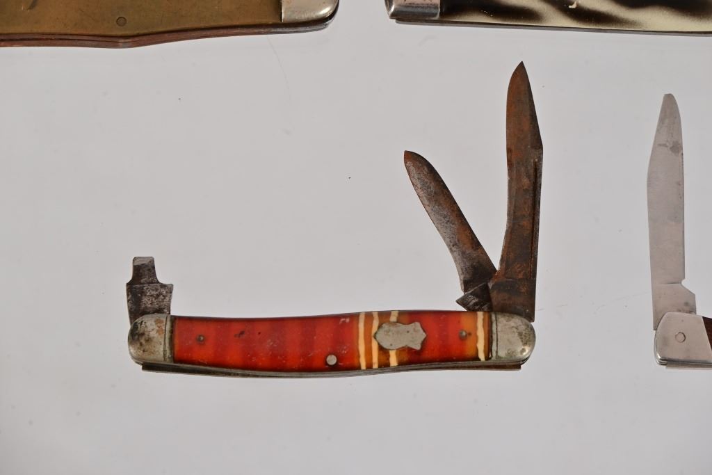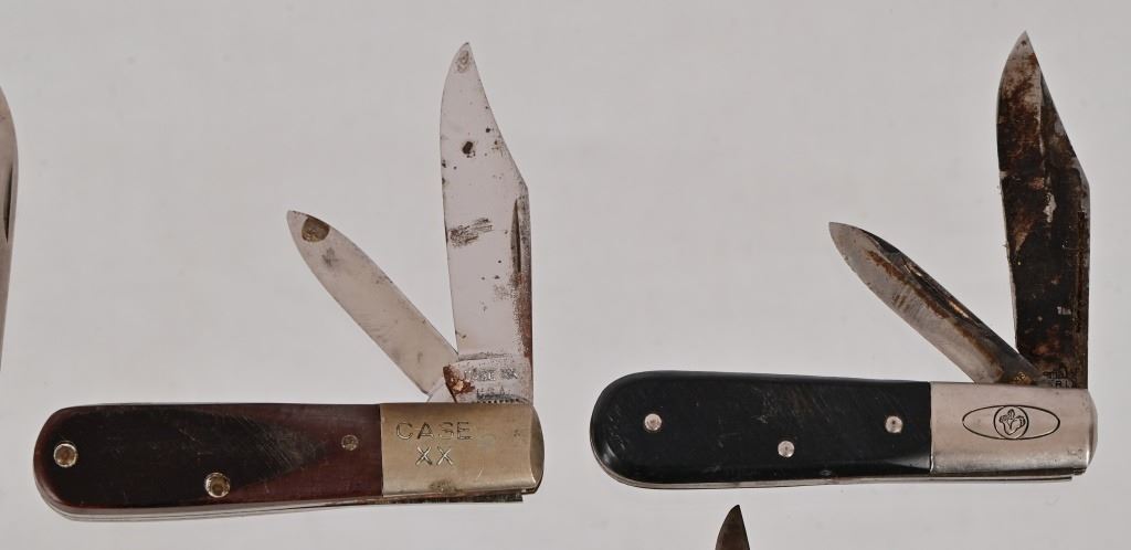 Case XX, Buck, Imperial, Remington UMC, Camco, German. Largest measures 3 5/8" when closed. Smallest measures 2 5/8" when closed.