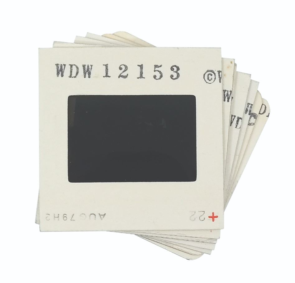 (Epcot, c.1979) A collection of (7) slides featuring scenes from the World of Motion attraction at Epcot. Although the World of Motion was replaced by the Test Track after it closed in 1996, these slides beautifully capture familiar scenes from the original attraction. Each slide measures approximately 2"x2" and is in very good condition.