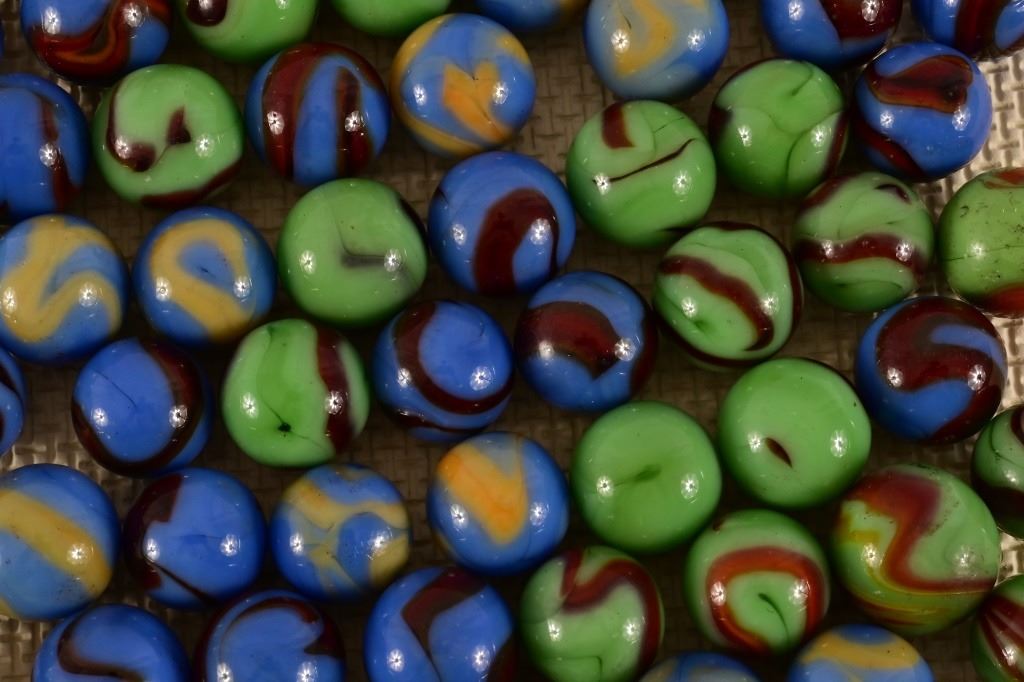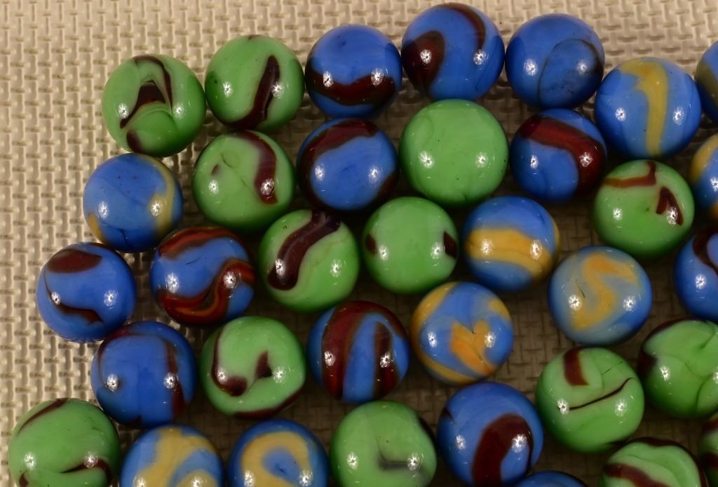 Blue/green/brown in color. Approx. 1/2" Diameter