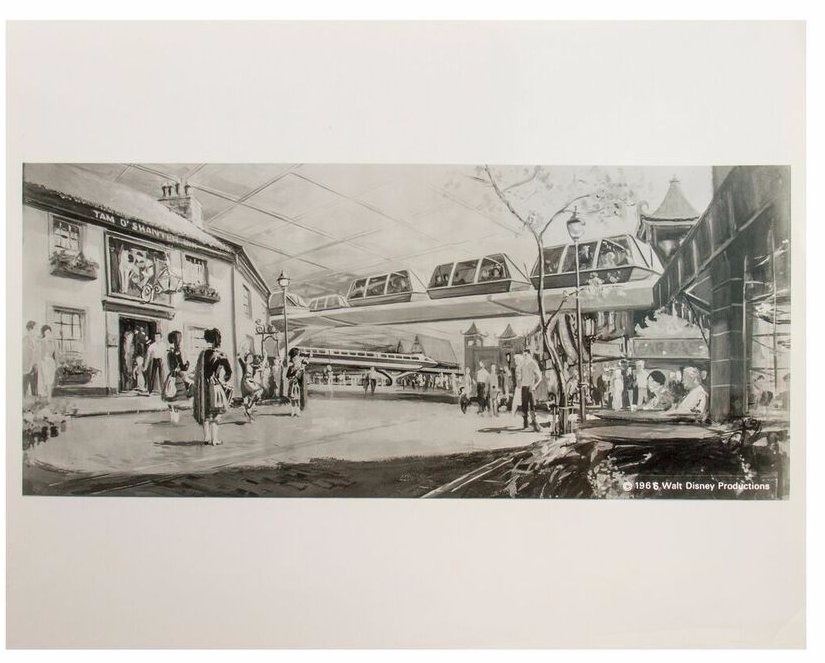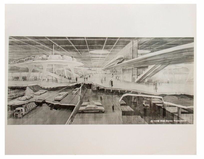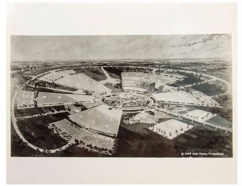 (EPCOT, 1966) A collection of (8) publicity photos featuring concept imagery from EPCOT. Most of the photos are dated 1966 with 1 dated 1969, and each photo has an information slip adhered to the back relating to each image. Each photo measures approximately 8"x10" and the set is in overall very good condition.