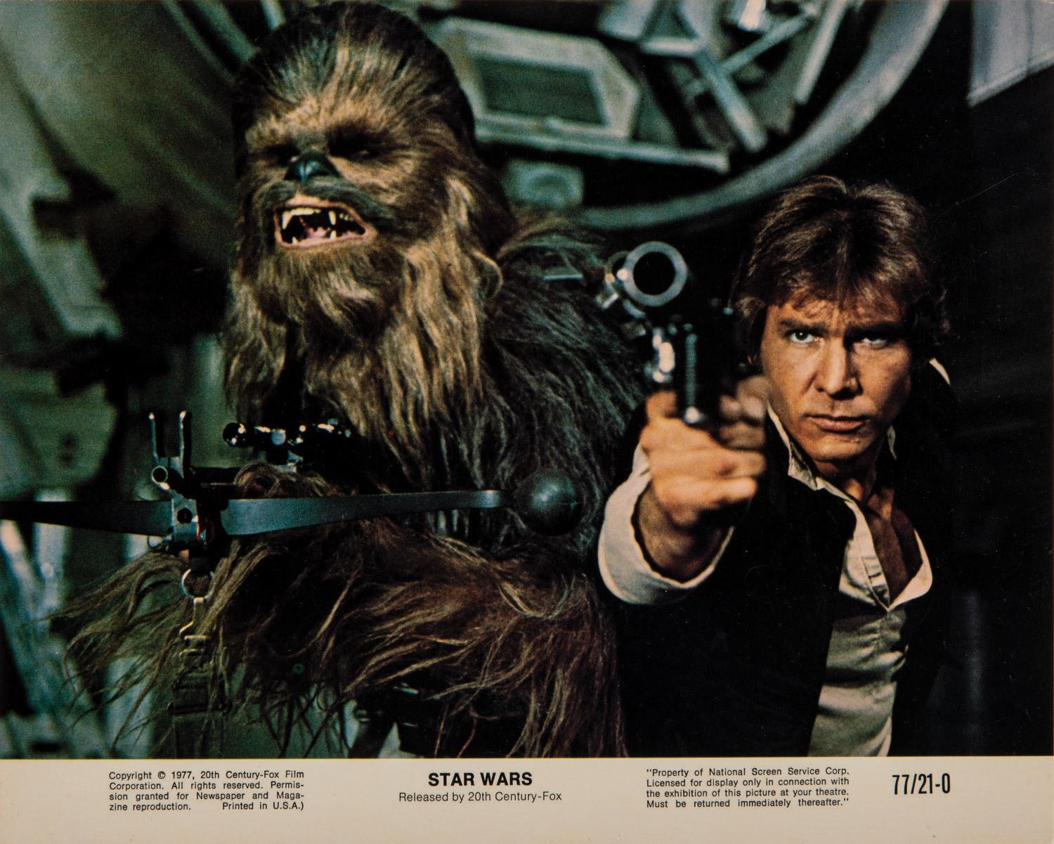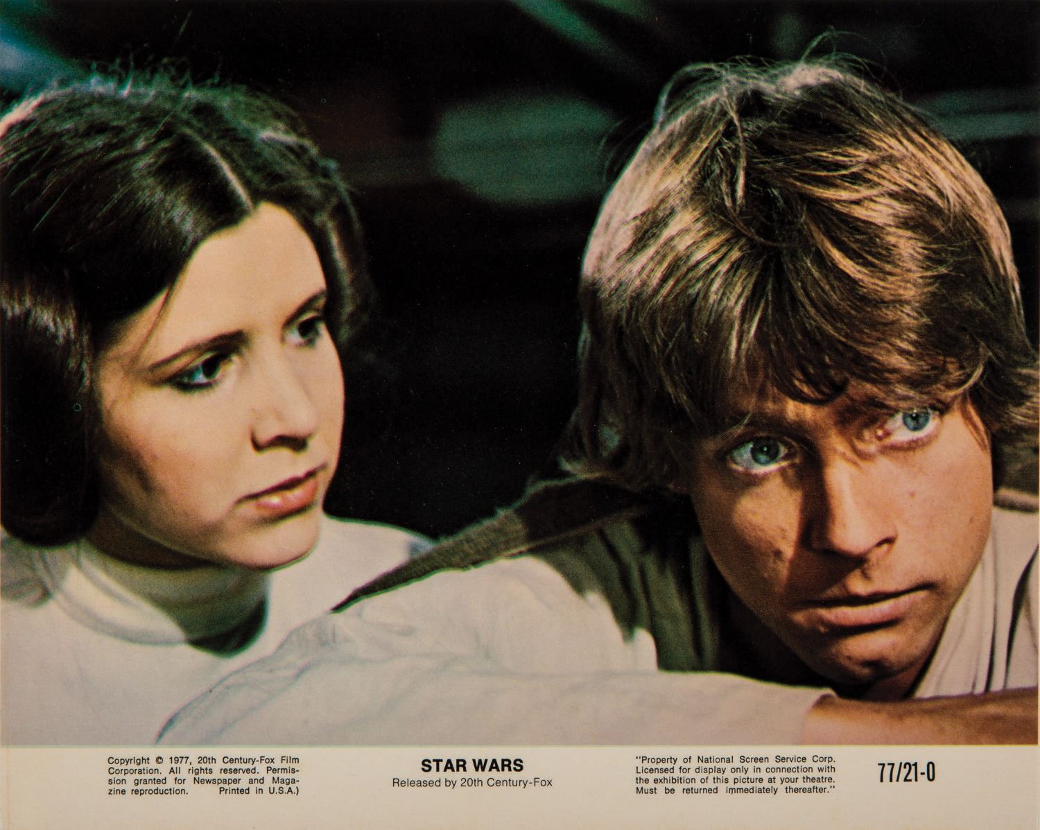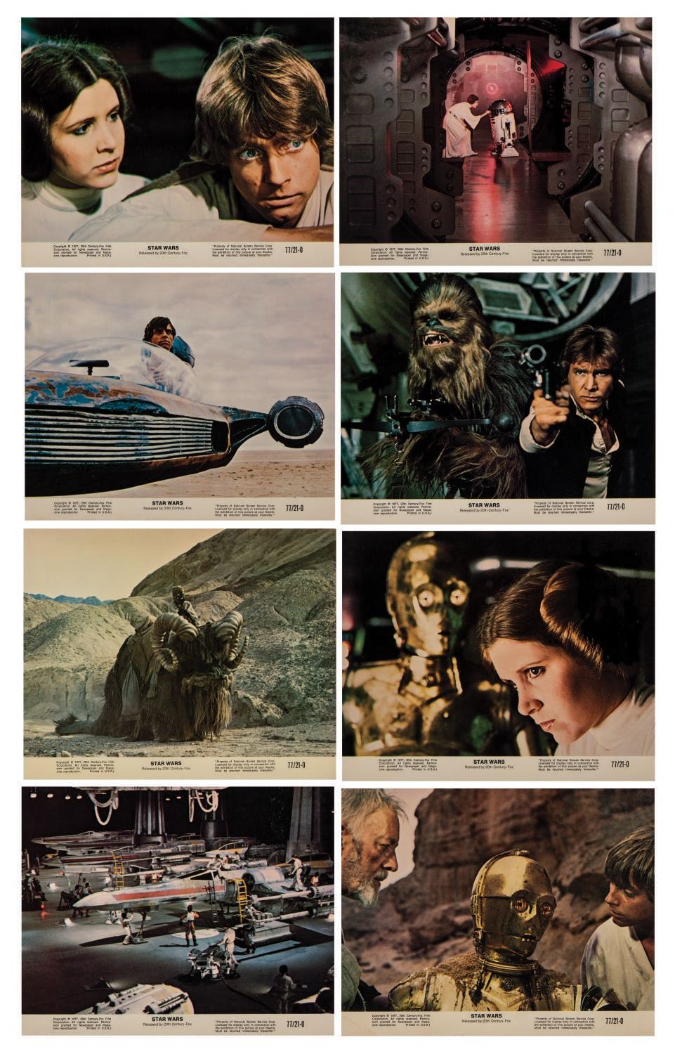 (20th Century Fox, 1977) A collection of (8) Lobby Cards for "Star Wars "released by 20th Century-Fox. Among the collection are scenes featuring Luke Skywalker, Princess Leia, Han Solo, Chewbacca, and C-3PO. Measuring 8"x10" the cards are in overall fine condition.