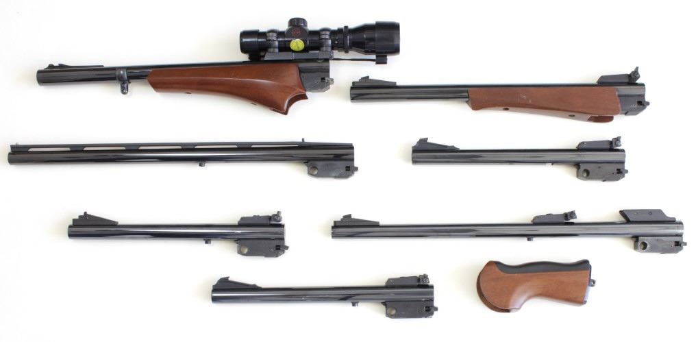 2) 14" .357 and .41 mag with Simmons scope, 2) 16" in 45 Colt/.410 and 223 Rem, 3) 10" .357 mag, 7mm and 44 mag. From an old St. Louis collection. Est. 350-600