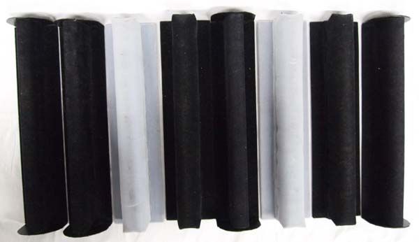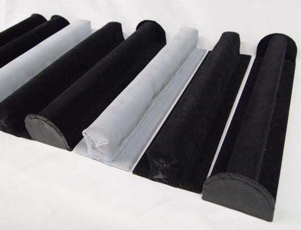 Collection of 8 Velvet Covered Bracelet Displays, longest measures 14''L x 3''W x 2''H, 2 gray and 6 black