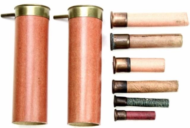 Collection of 8 antique shotgun shellsin various sizes, smallest being 15/16" long. Est. 75-150