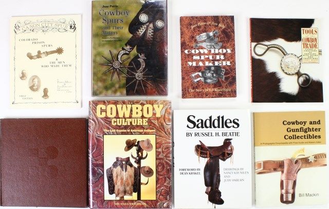 Saddle, Canyon City Spur, Cowboy Spurs and their Makers, Cowboy Spur Maker, Tools of the Cowboy Trade, Cowboy and Cowboy Gunfighter Collectable and The Cowboy. Est. 175-275