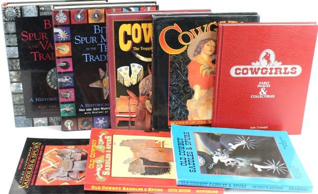 Bit and Spur makers, Cowboy Trappings, Old Cowboy Saddles, Cowgirls Early Images and Cowgirls Women of Wild West. Est. 125-200