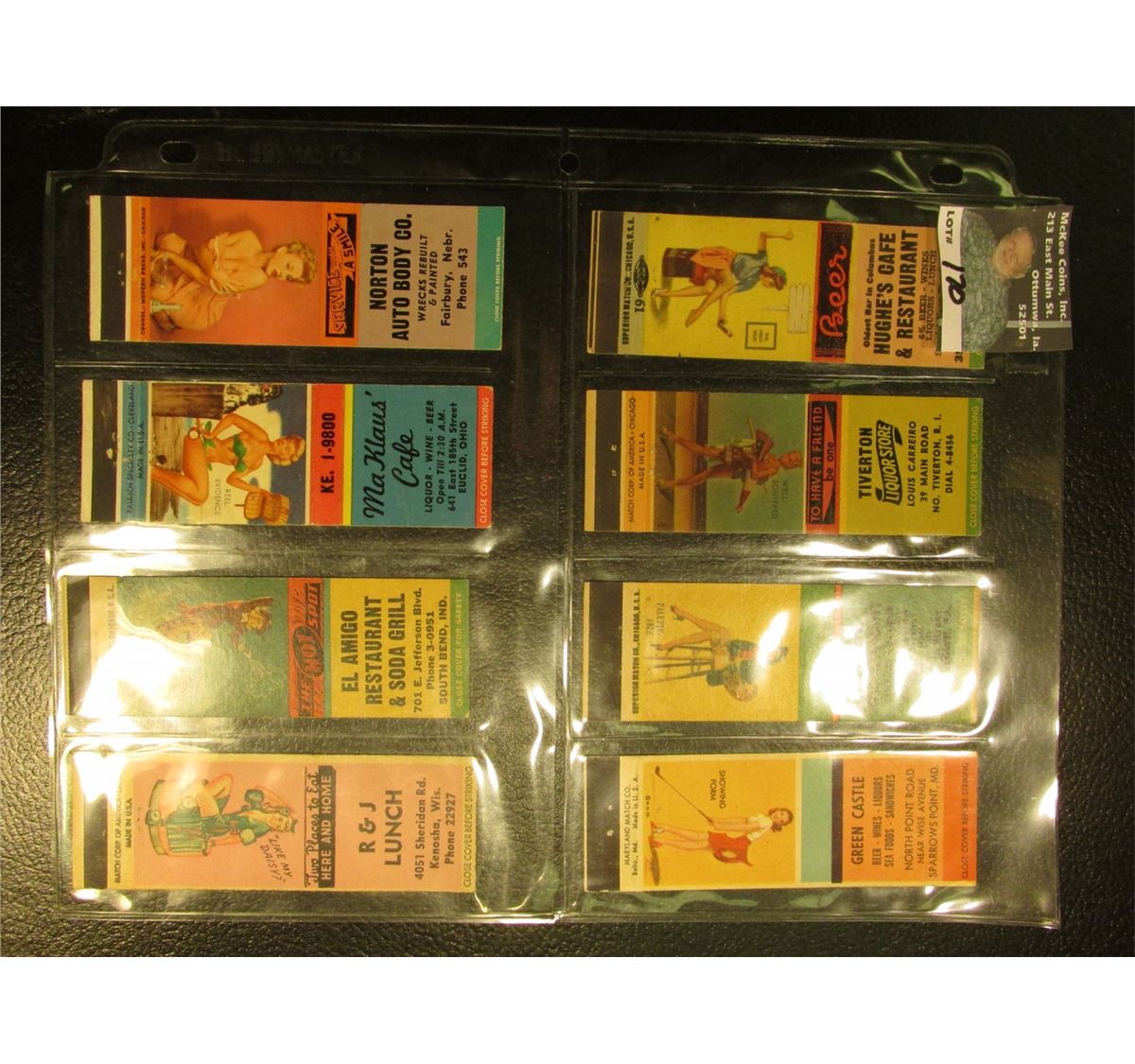 Collection of (8) different Risque Match Book Advertising Covers In a special plastic page for covers.