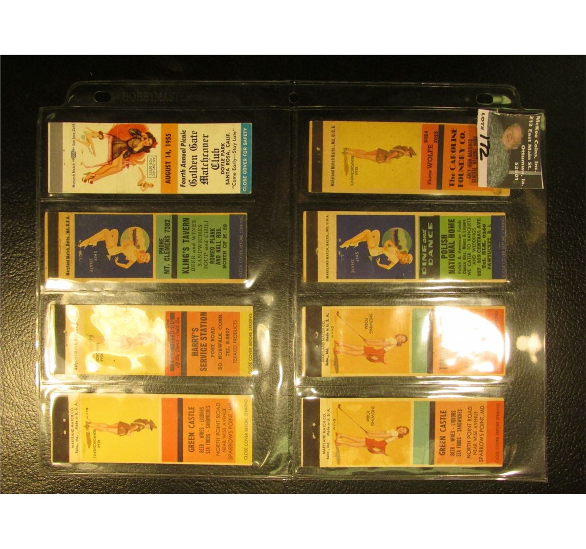 Collection of (8) different Risque Match Book Advertising Covers In a special plastic page for covers.