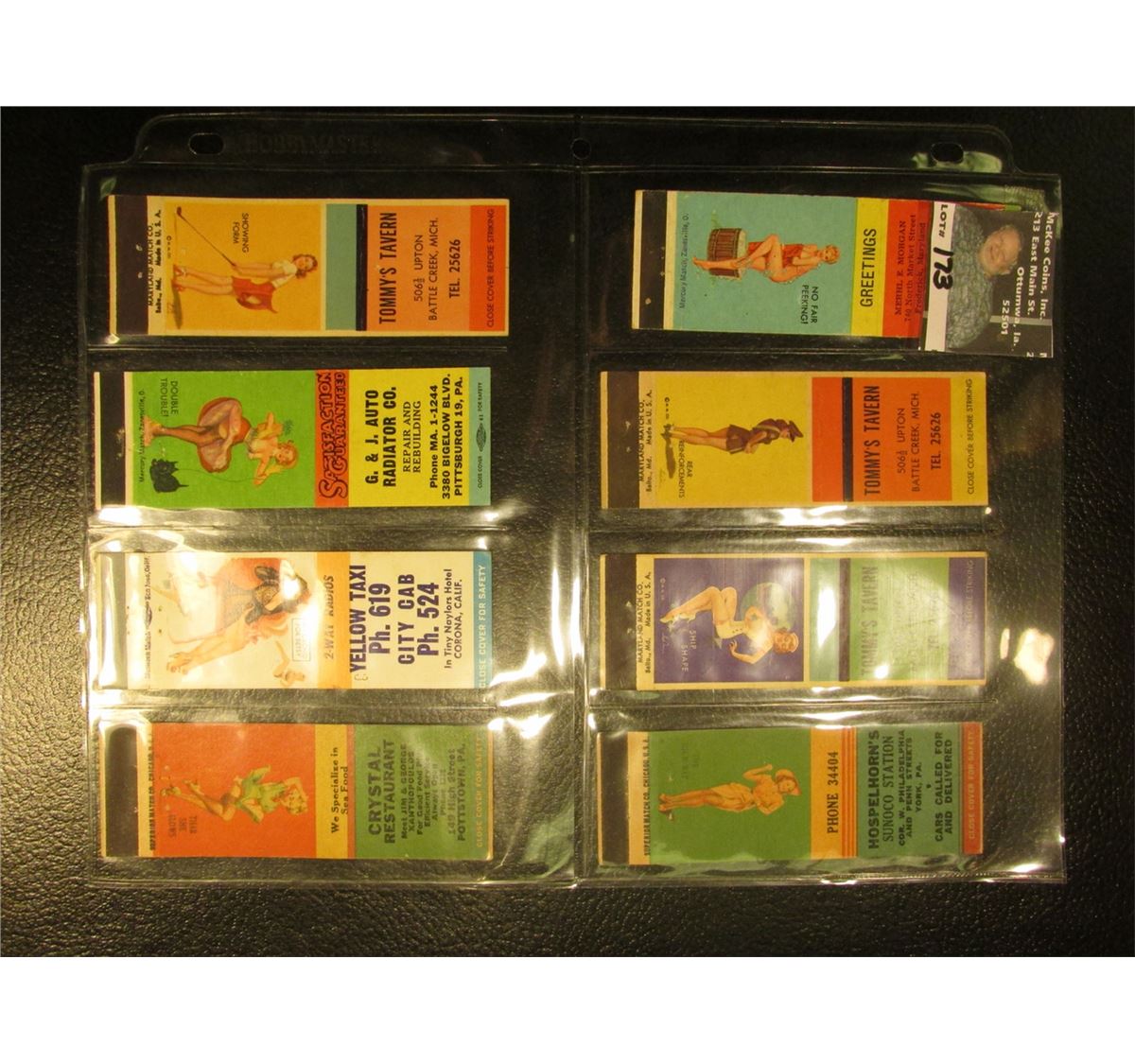 Collection of (8) different Risque Match Book Advertising Covers In a special plastic page for covers.