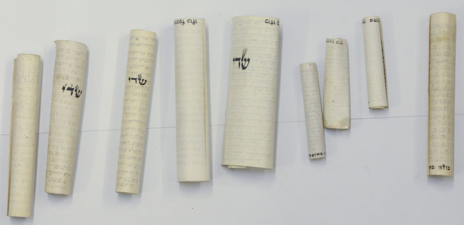 Collection of 8 mezuzah scrolls, degree of Kosher has not been tested, sold as they are, length: 6-10 cm.