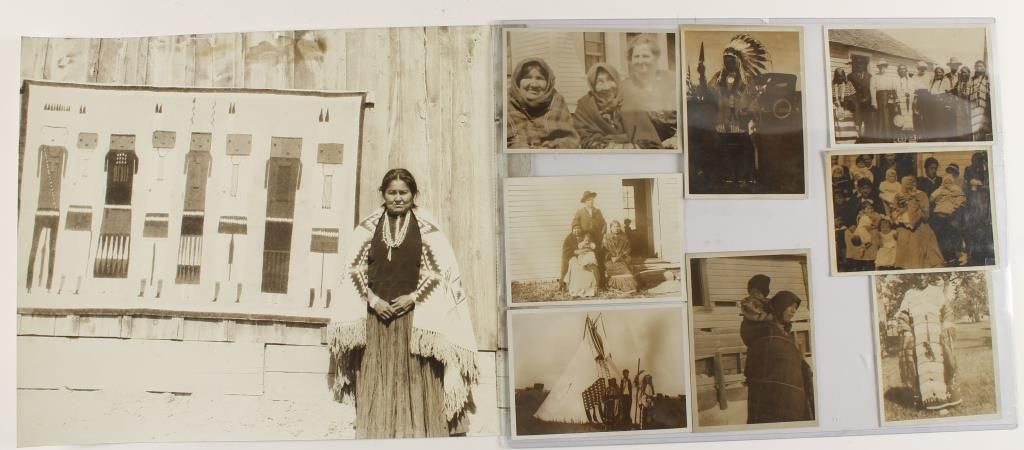 By Harmon Percy Marble. Depicting Sioux at fort Thompson. 1920-1930. One of which is a large photograph of yei be chei rug. 20" x 16".