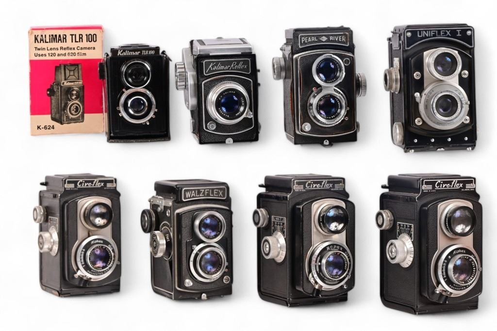 Kalimar Reflex TLR 100 (NOS in original box) Kalimar Reflex SLR; Argoflex, Walz-Flex, Pearl River (rare), and Uniflex I TLR cameras. (3) Circ-Flex.