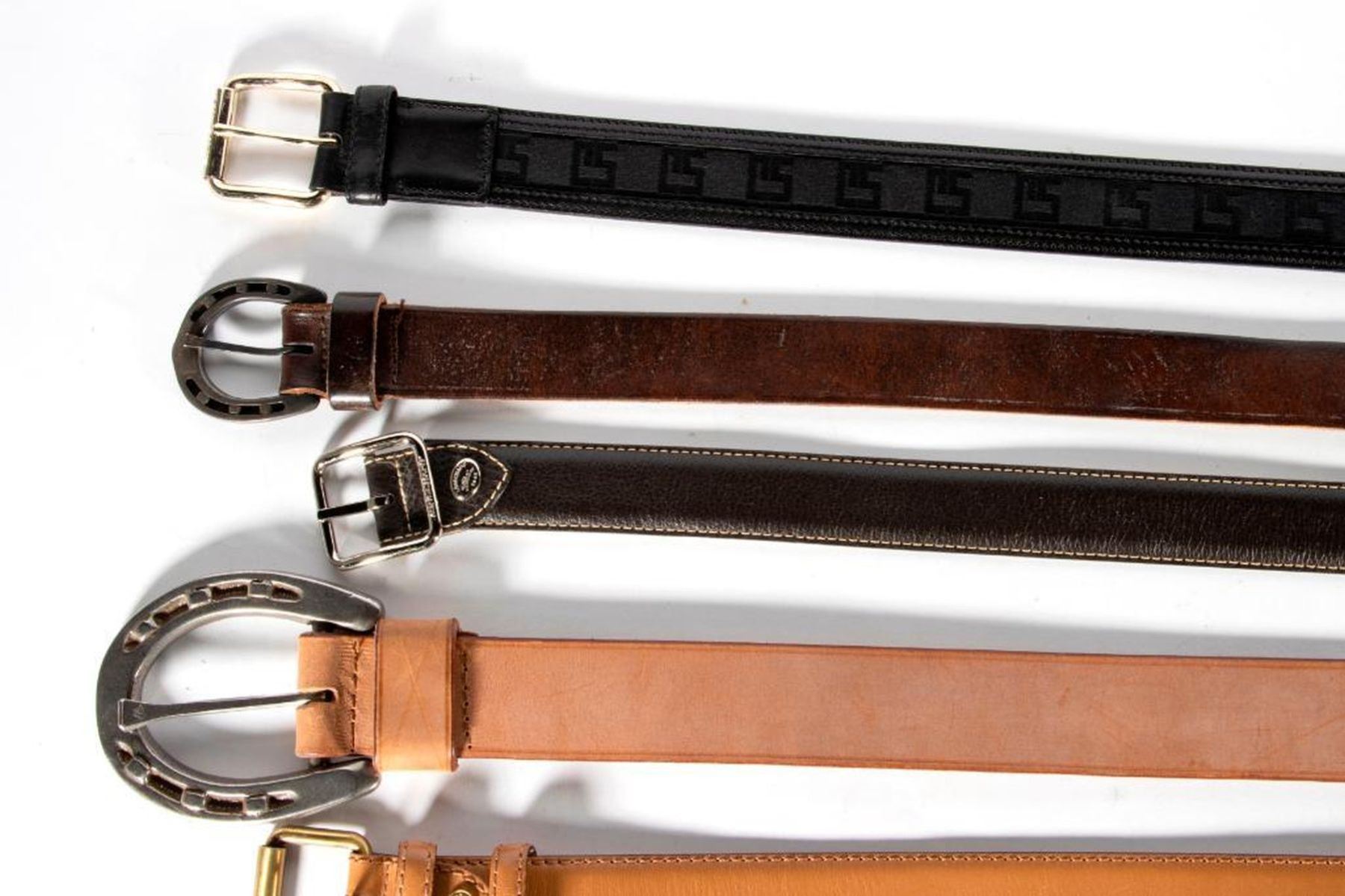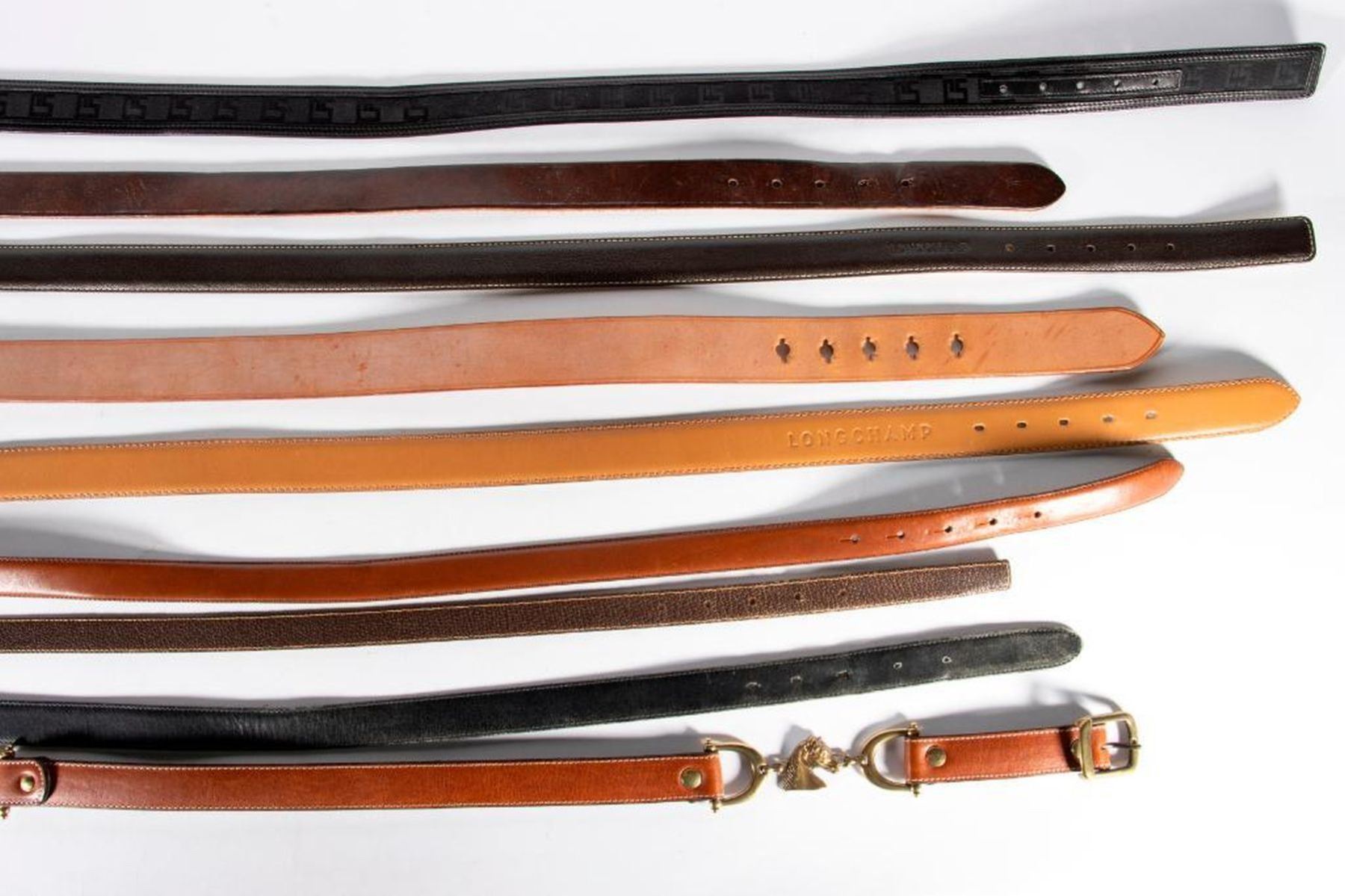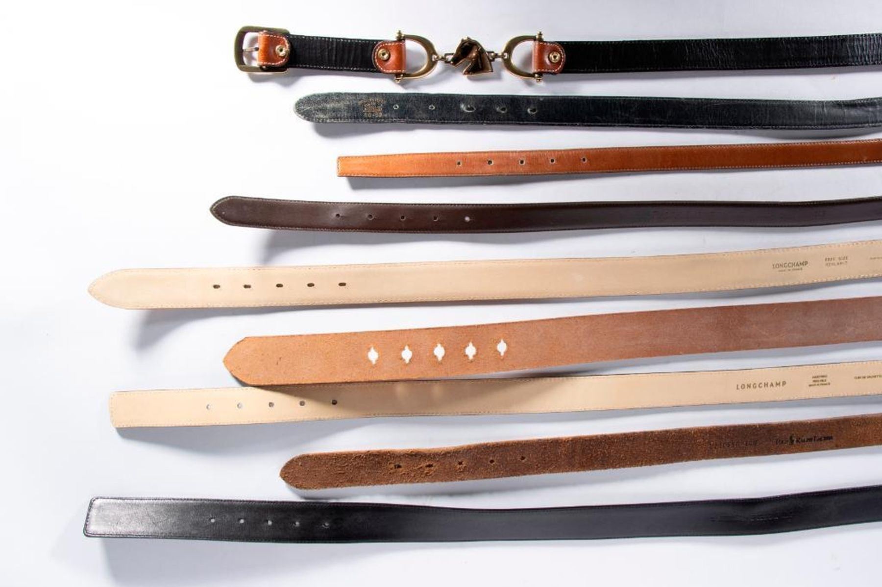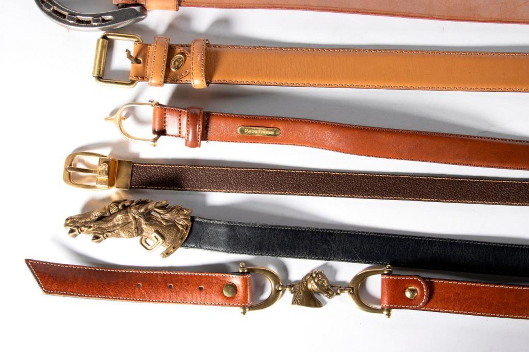 including: Longchamps tan, 29-33in., Longchamps dark brown, 30-34in., Ralph Lauren brown stirrup, 27-31in., Ralph Lauren dk brown horseshoe, 25-29in., Ralph Lauren tan large horseshoe, 26-30in., Gucci black horse head, 26-30in., in addition to one by St. John and two unsigned.
