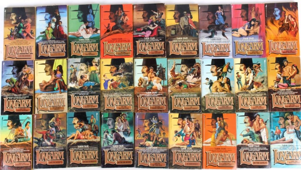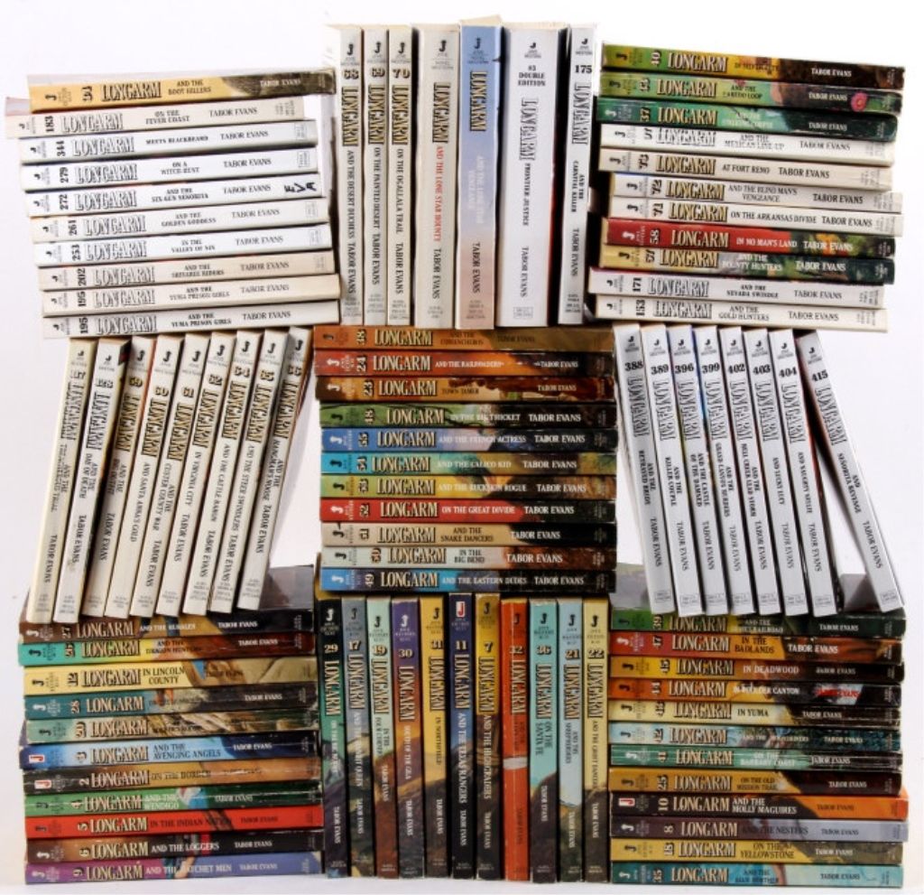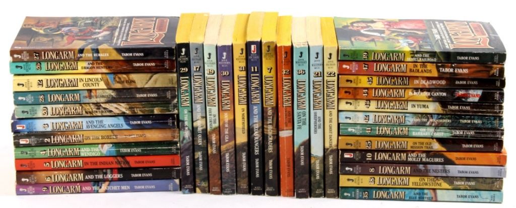 The lot features 90 unique Western books by Longarm in a clear tub. These all sell as one money and have great original advertising covers and western subject matter. These are all by Tobar Evans and published by A JoveBooks.