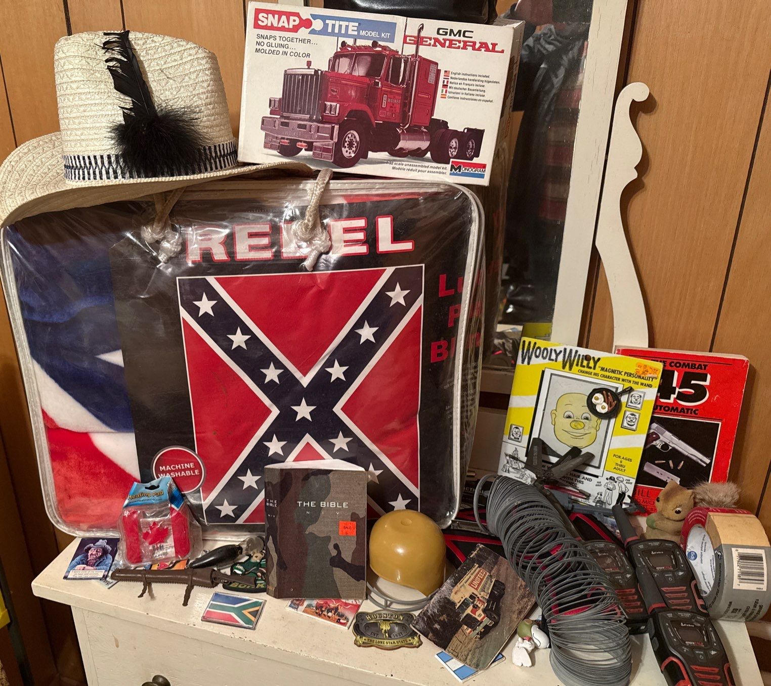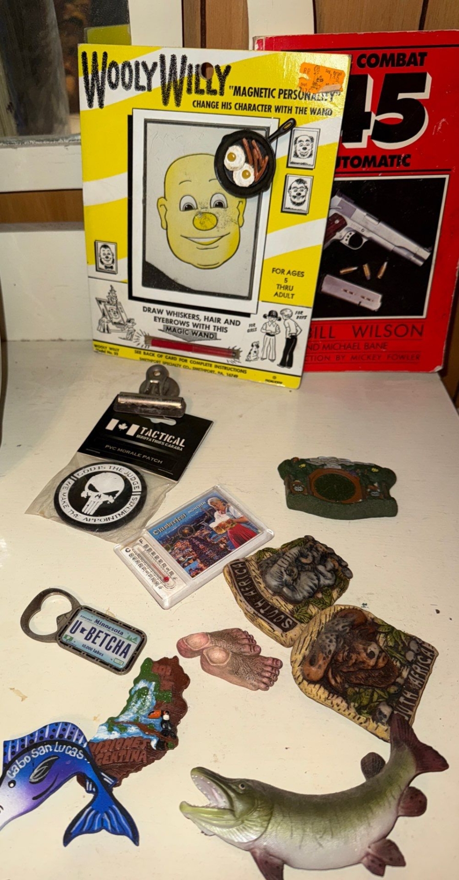 Collection of A Variety of Boyish Collectibles- Bible, Fridge Magnets, Slinky ++