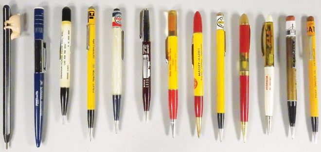 Collection of Advertising Mechanical Pencils and one "Pig Pen". Several novelty pencils with sausage, heating oil truck and corn cob. 13 pcs total.