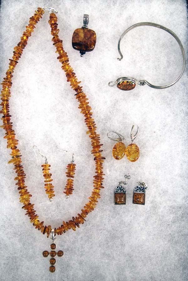 Collection of Amber Jewelry, necklace measures 18'' end to end, bracelet is marked .925 and earring wires are marked .925