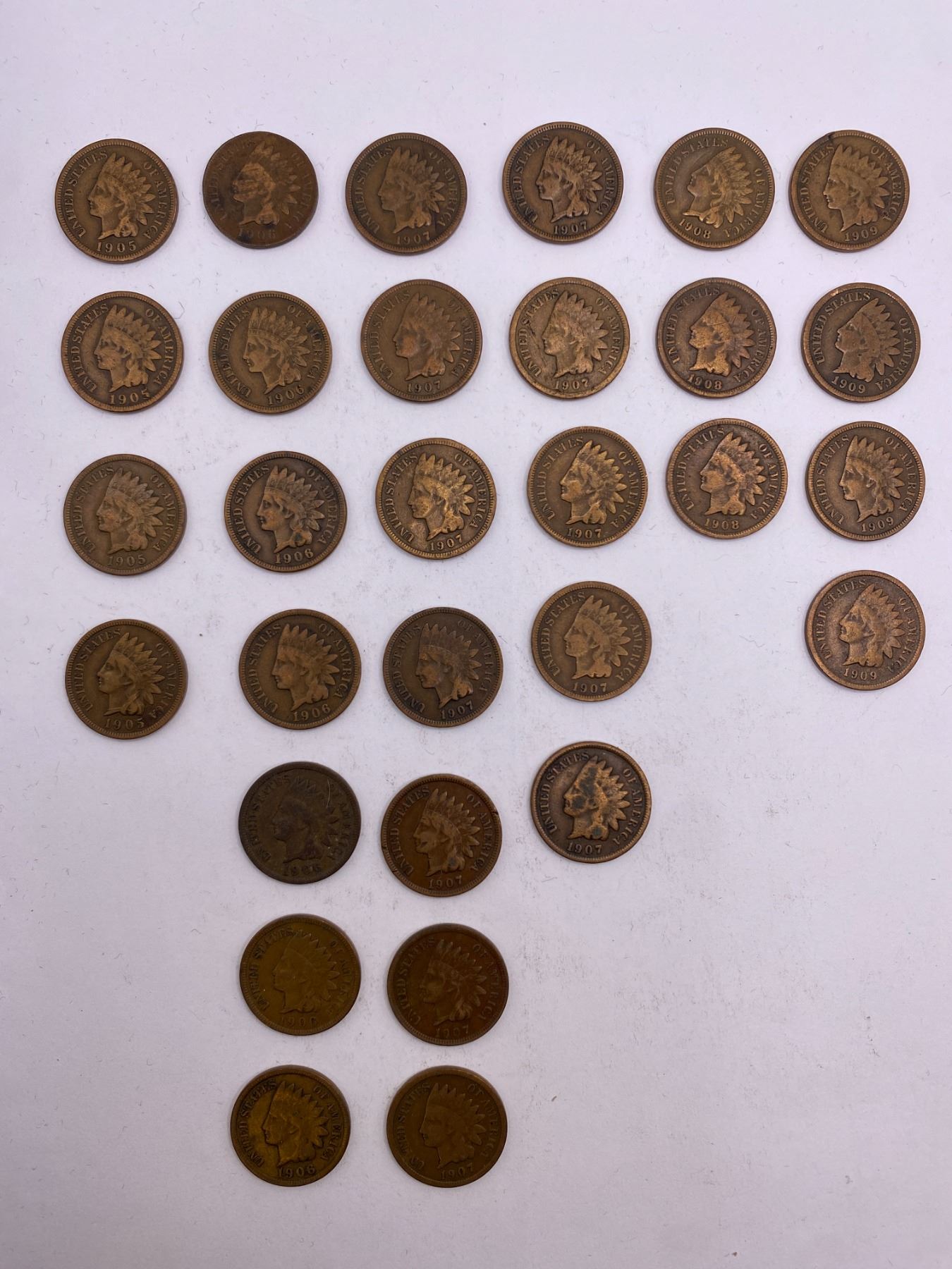 Collection of Antique American Pennies 1905, 06, 07, 08, & 09