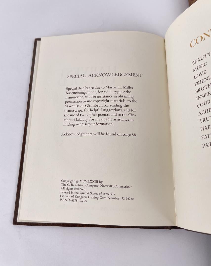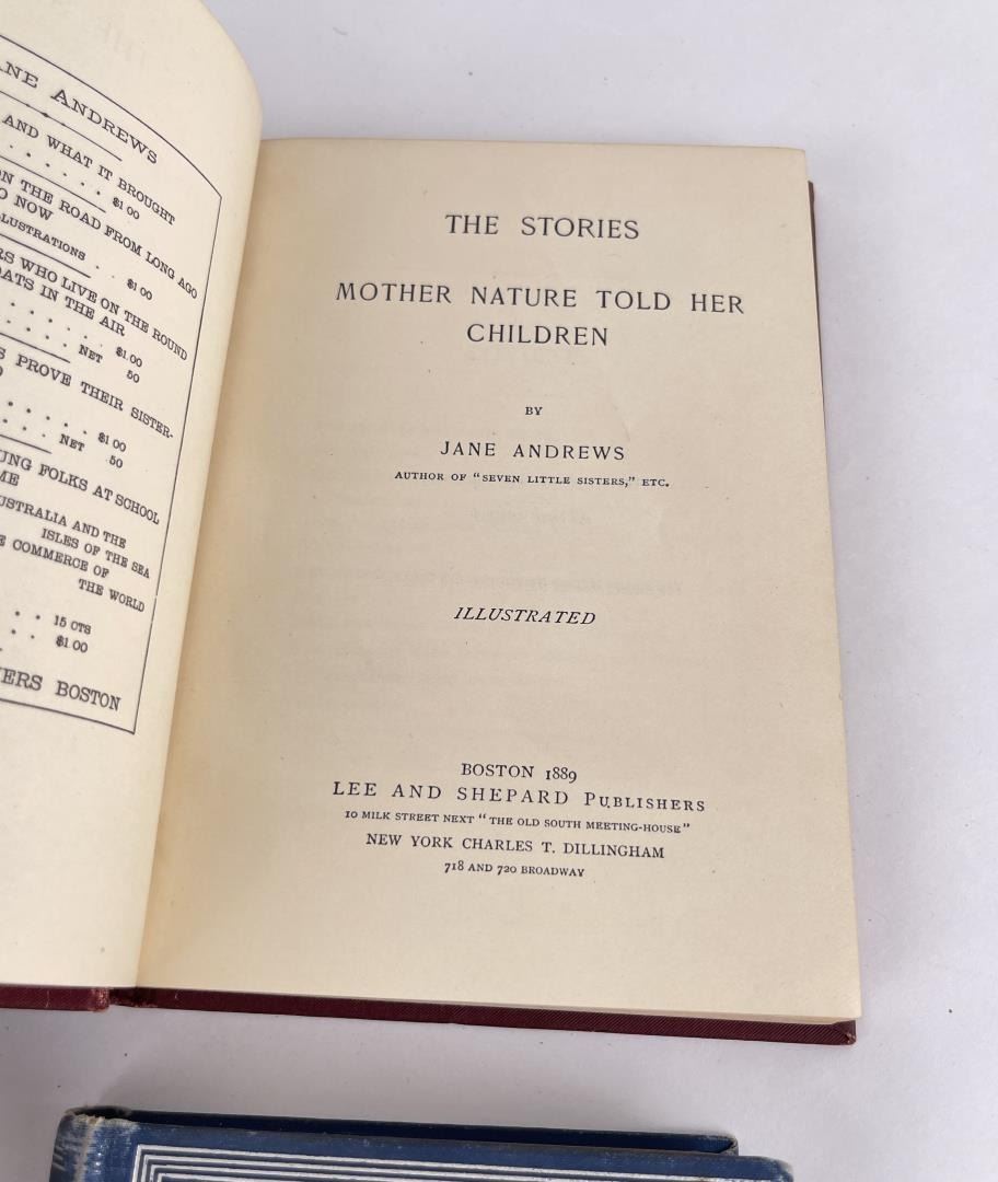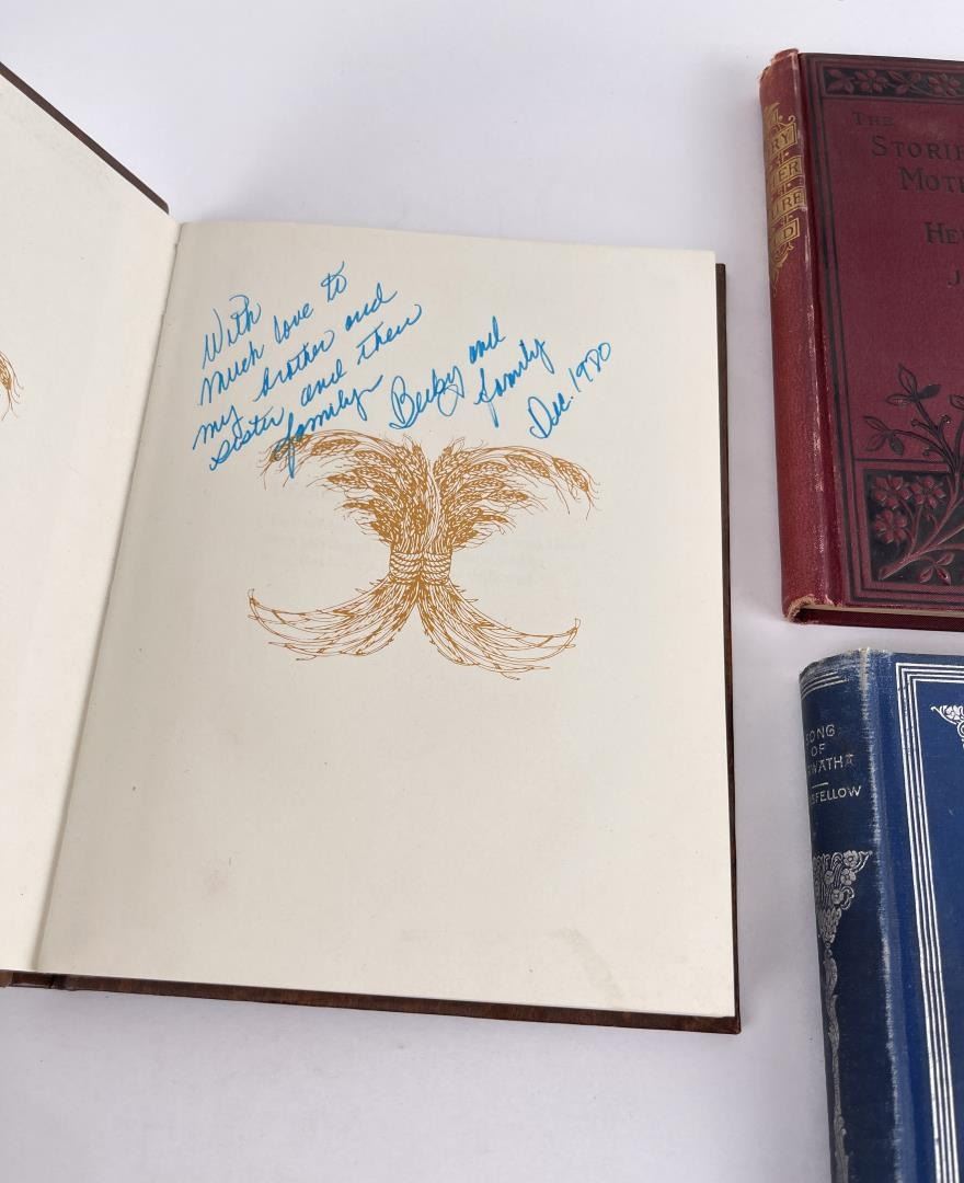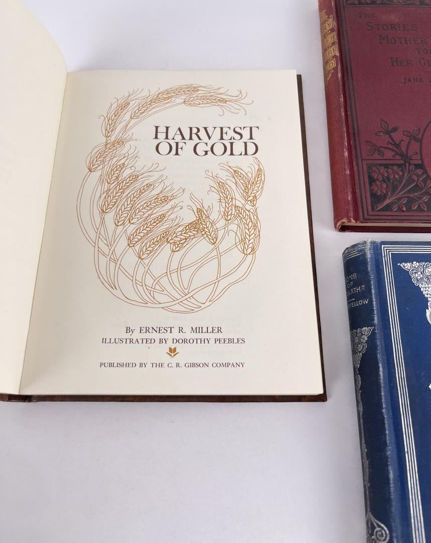 Harvest of Gold by Ernest Miller, The Stories Mother Nature Told Her Children by Jane Andrews, The Song of Hiawatha by HW Longfellow.