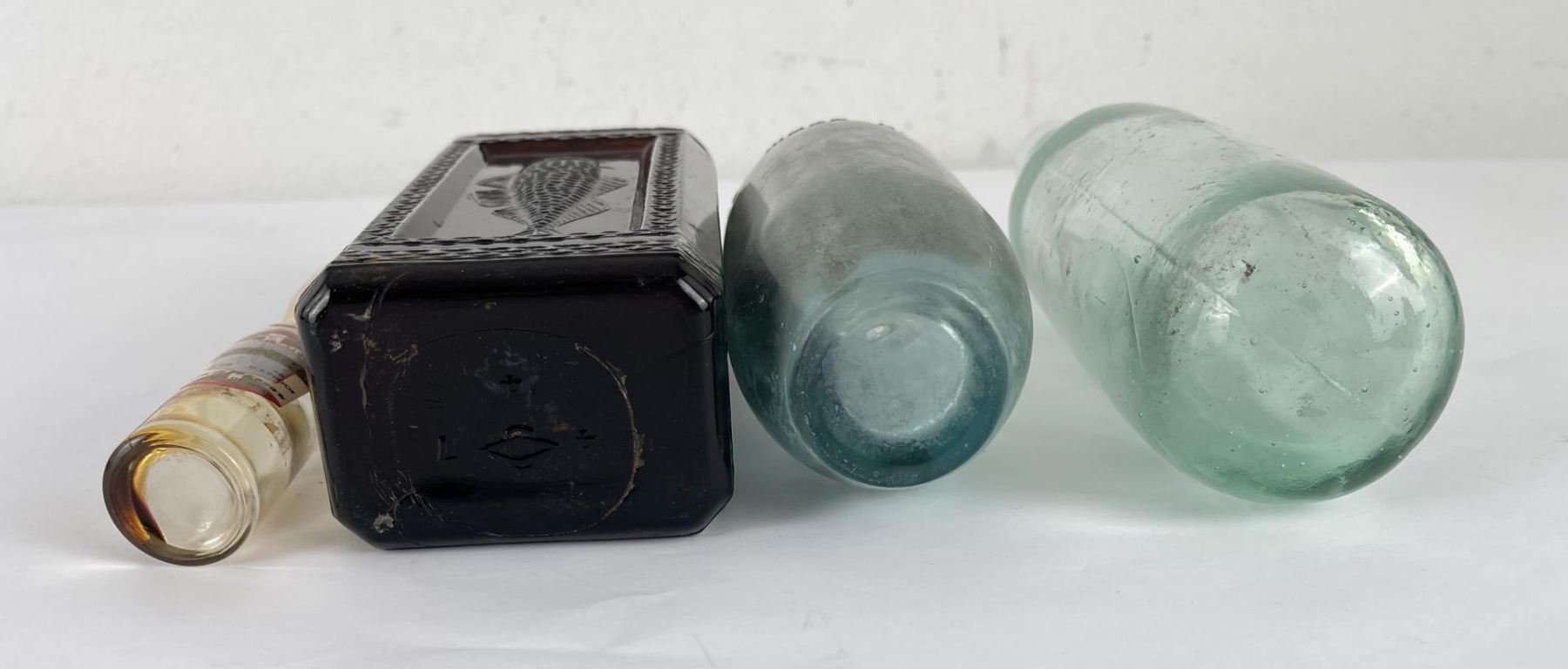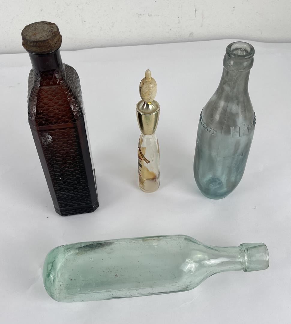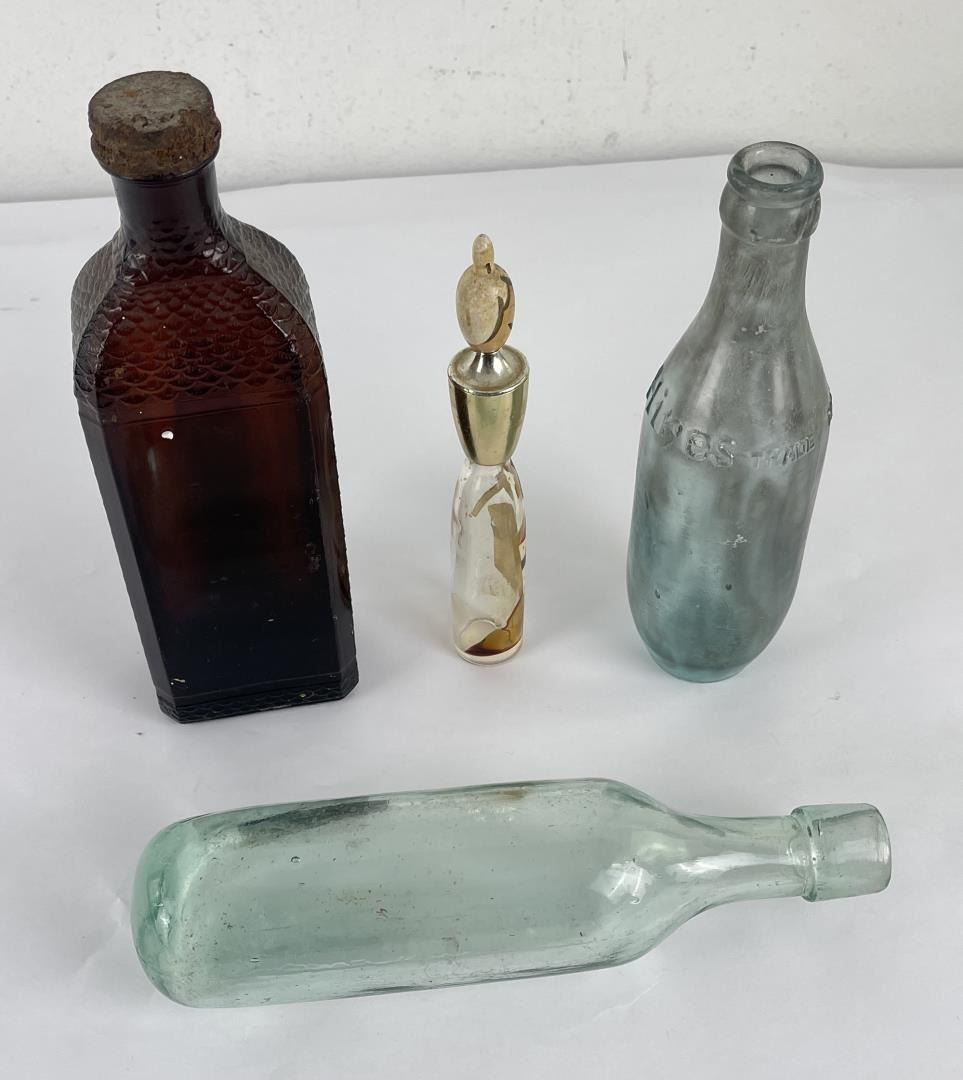 Hires Torpedo Bottle. Sumire Japanese Whiskey Bottle, Cod Liver Oil, and an Unmarked Torpedo bottle.