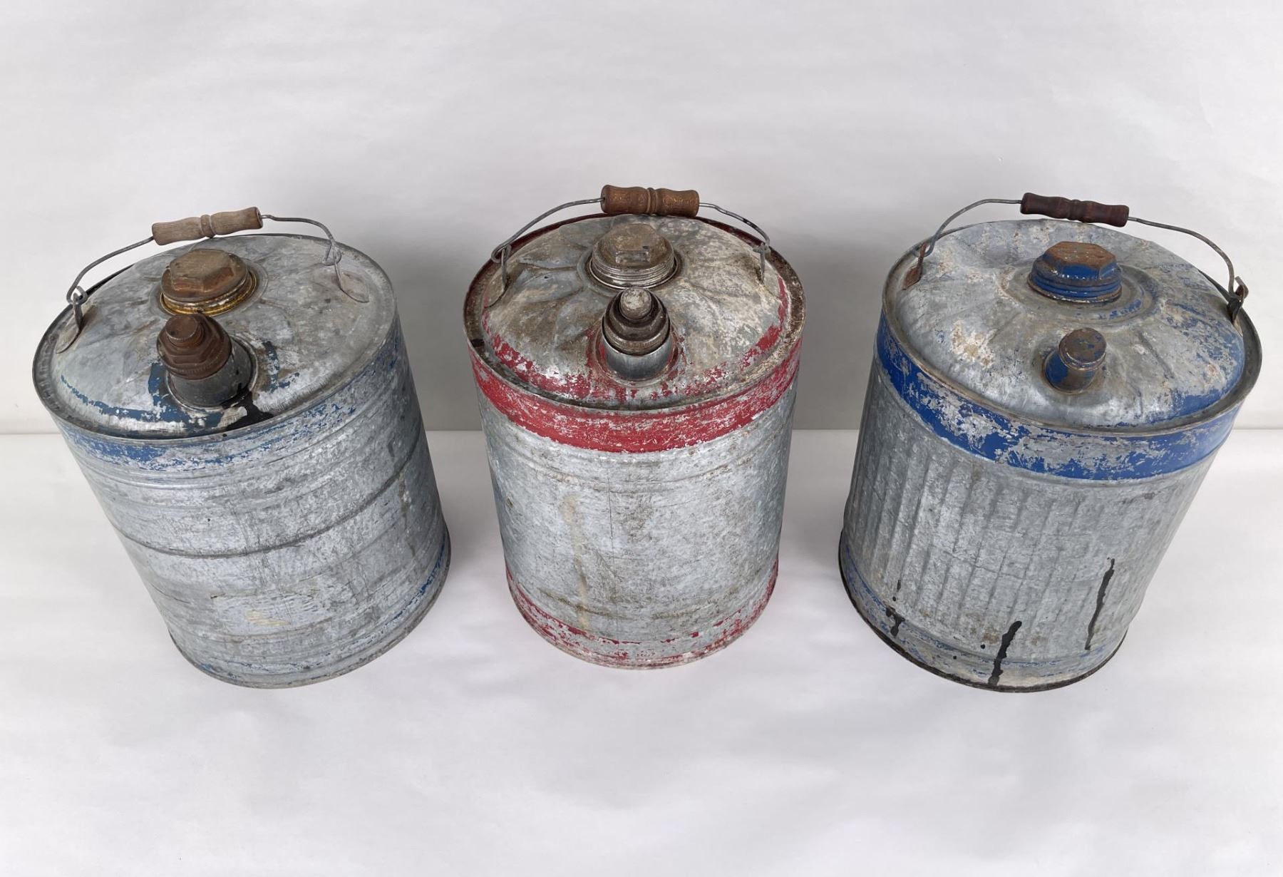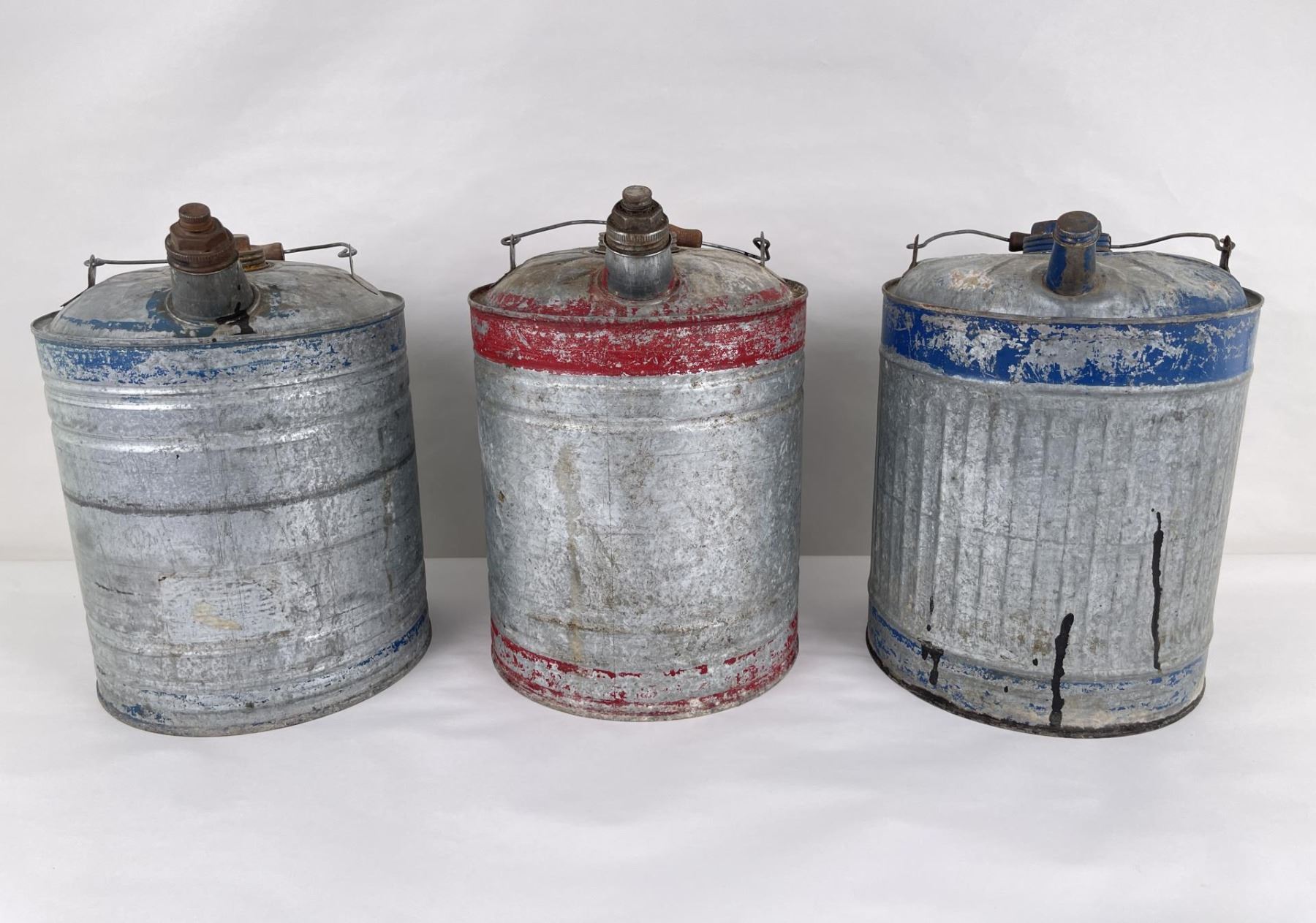 Collection of Antique Galvanized Fuel Cans