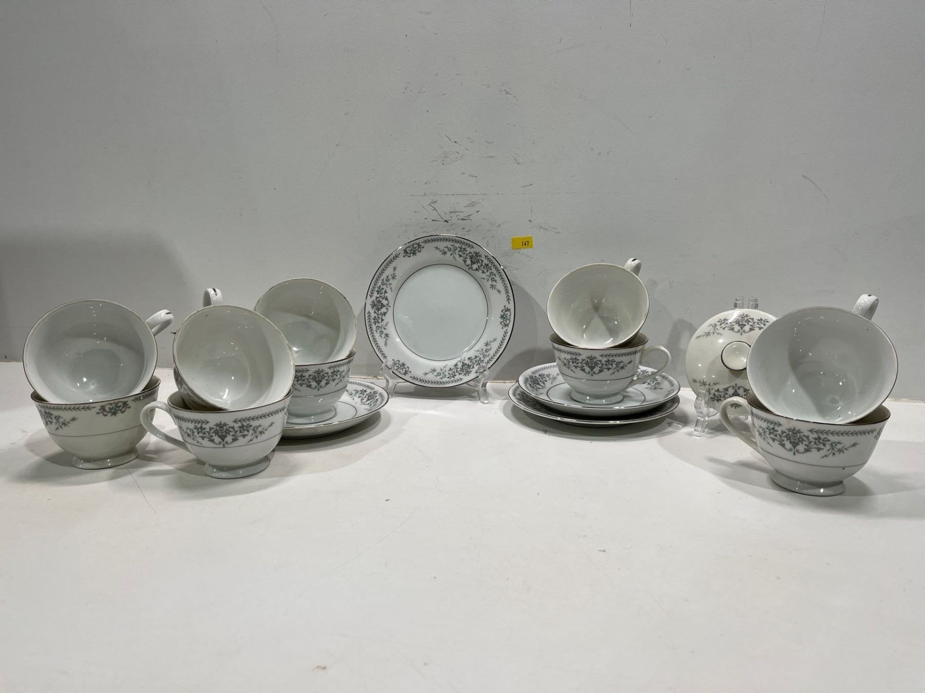 8 Tea Cups, Sugar holder, 2 plates, 2 saucers