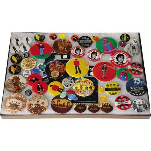 <B>Collection of Beatles Buttons.</B></I> Set of 55 Beatles buttons, mostly from the 1970s, mounted and framed to an overall size of 20" x 14" and in Overall Excellent condition. <BR><BR><B>Important notice:<