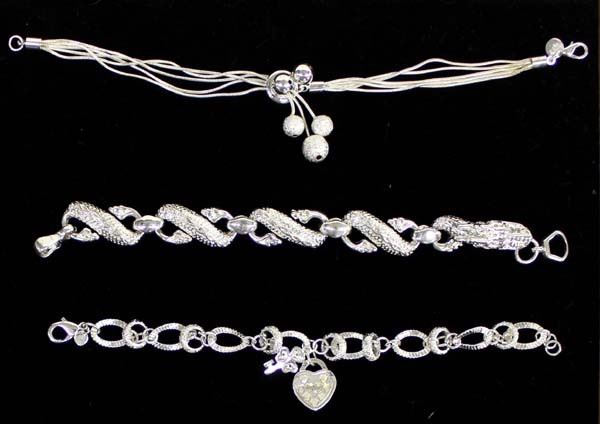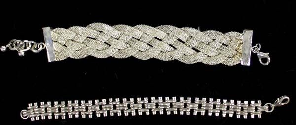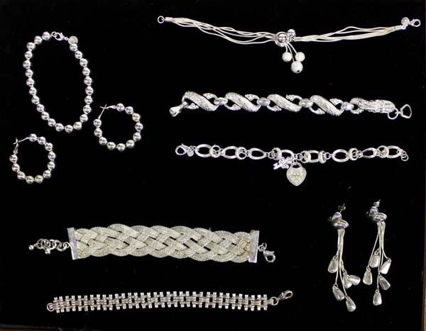 Collection of Beautiful Sterling Silver Jewelry, includes 6 bracelets and 2 pairs of earrings, longest bracelet measures 8.5''L and longest pair of earrings measures 3.5''L, all pieces are marked with the exception of the long dangle earrings, nice elegant items, 188.06g in total wt.
