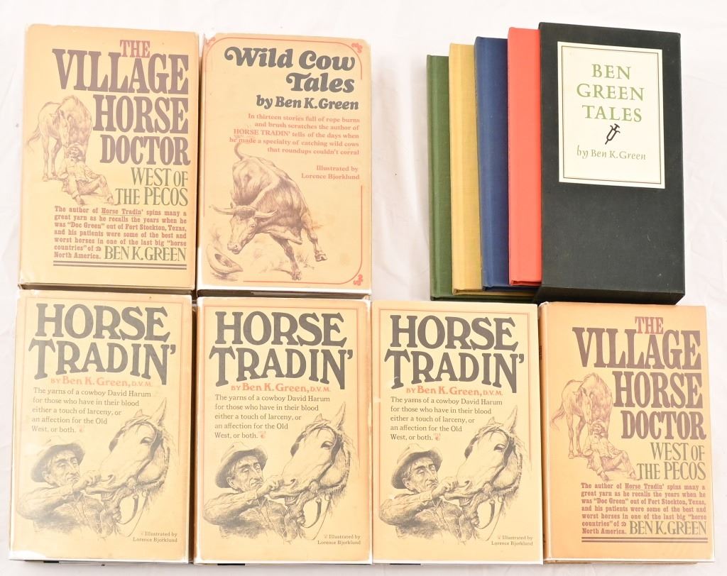 Includes "Wild Cow Tales" signed first edition. (2) first editions of "The Village Horse Doctor". (2) first edition, and (1) 4th print of "Horse Tradin'". "Ben Green Tales" 4-book volume set.