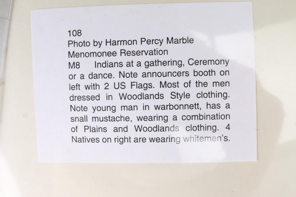 Several unframed photos by Carmen Percy Marble. Depicts Indians at a gathering with American flags. Several other photos from Fort Thompson. Also included with this lot is a photo of D Day by Joe Rosenthol. Framed, 9 x6". From the Estate of Steve Goldstein, Scottsdale, AZ.