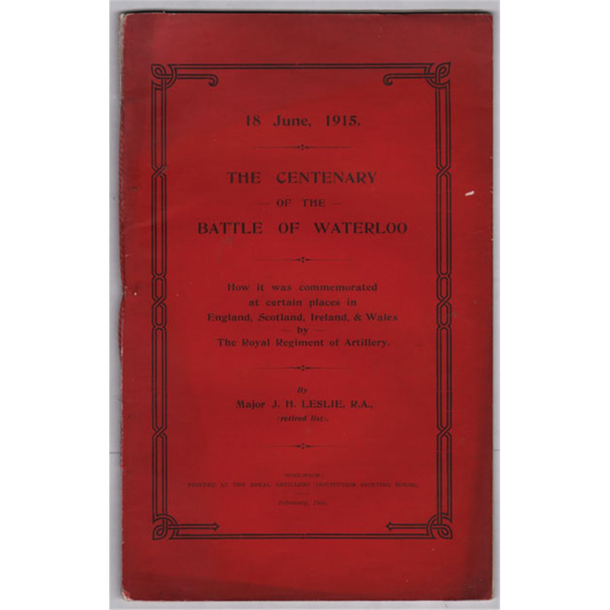 The Centenary of the Battle of Waterloo how it was commemorated by Major J. H. Leslie, Woolwich 1916, 18pp. Life of Sir General Hope Grant Vol. 1 by Colonel H. Knollys, Blackwood London 1894, 359pp. History of the Royal Irish Artillery by Major J. J. Crooks, Browne & Nolan Dublin 1914, 367pp, signed by the author. Tradition of the Royal Regiment of Artillery by Major J. H. Leslie, Woolwich 1913, 42pp, inscribed by the author. United Service Magazine, February 1916 and June 1917. The Journal of the Royal Artillery, March 1912, January, March, June, July 1920. (11 items)