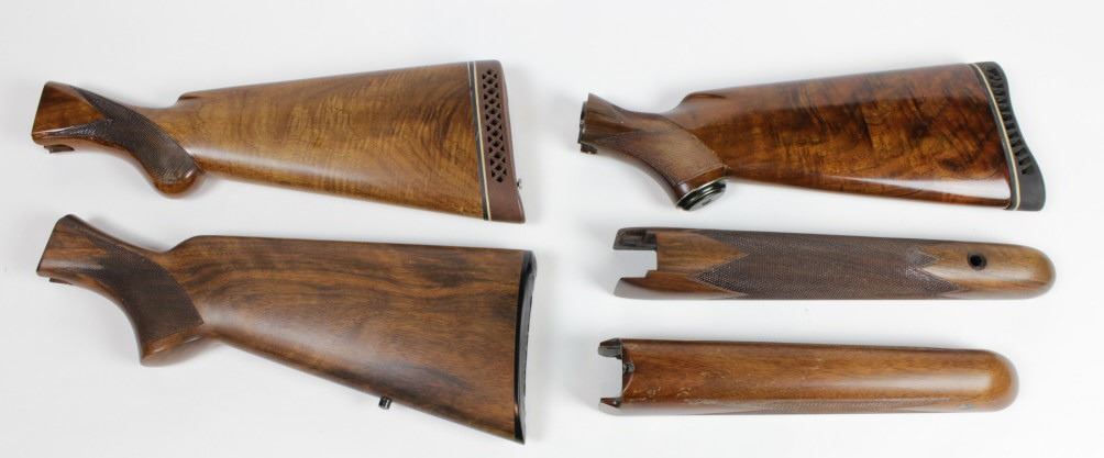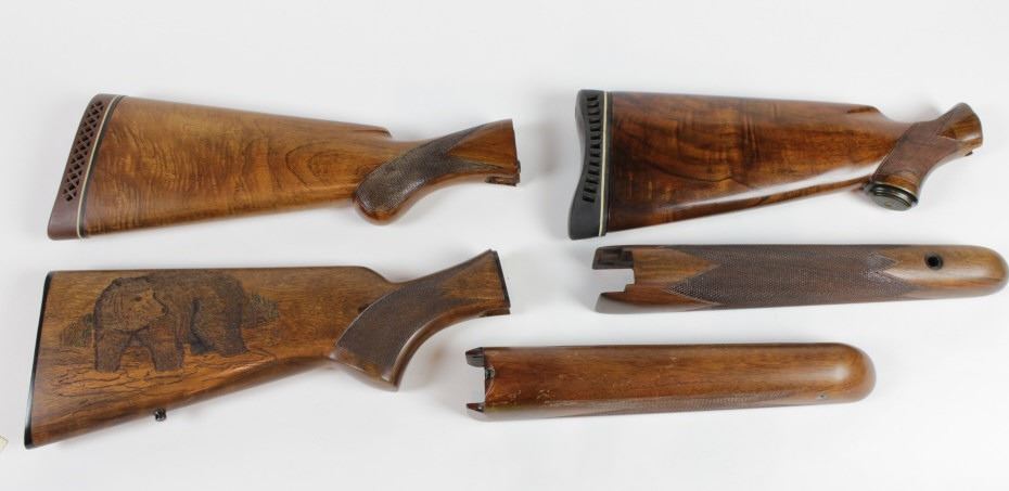 Collection of Browning stocks including 3 buttstocks and 2 forends.3 buttstocks and 2 forends.