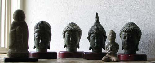 Title: Four Buddah Heads, Stone Buddah, Seated Buddah