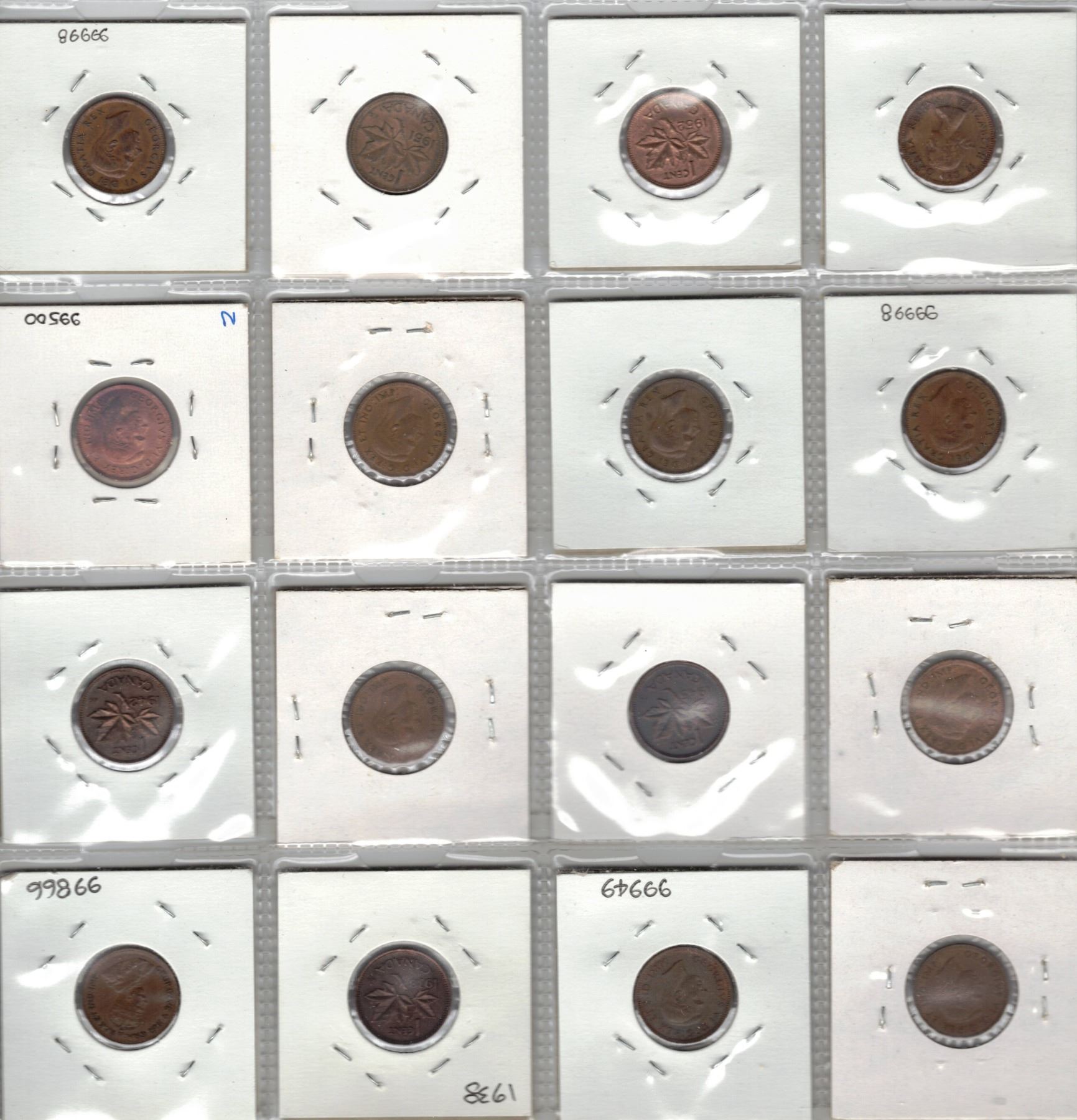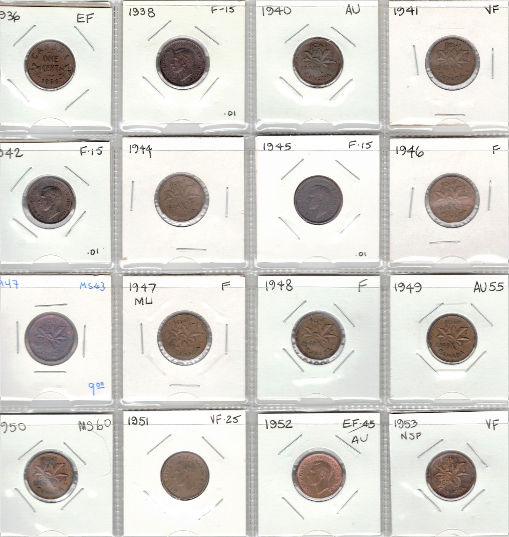 Collection of Canadian One Cent Coins - 1936-1953