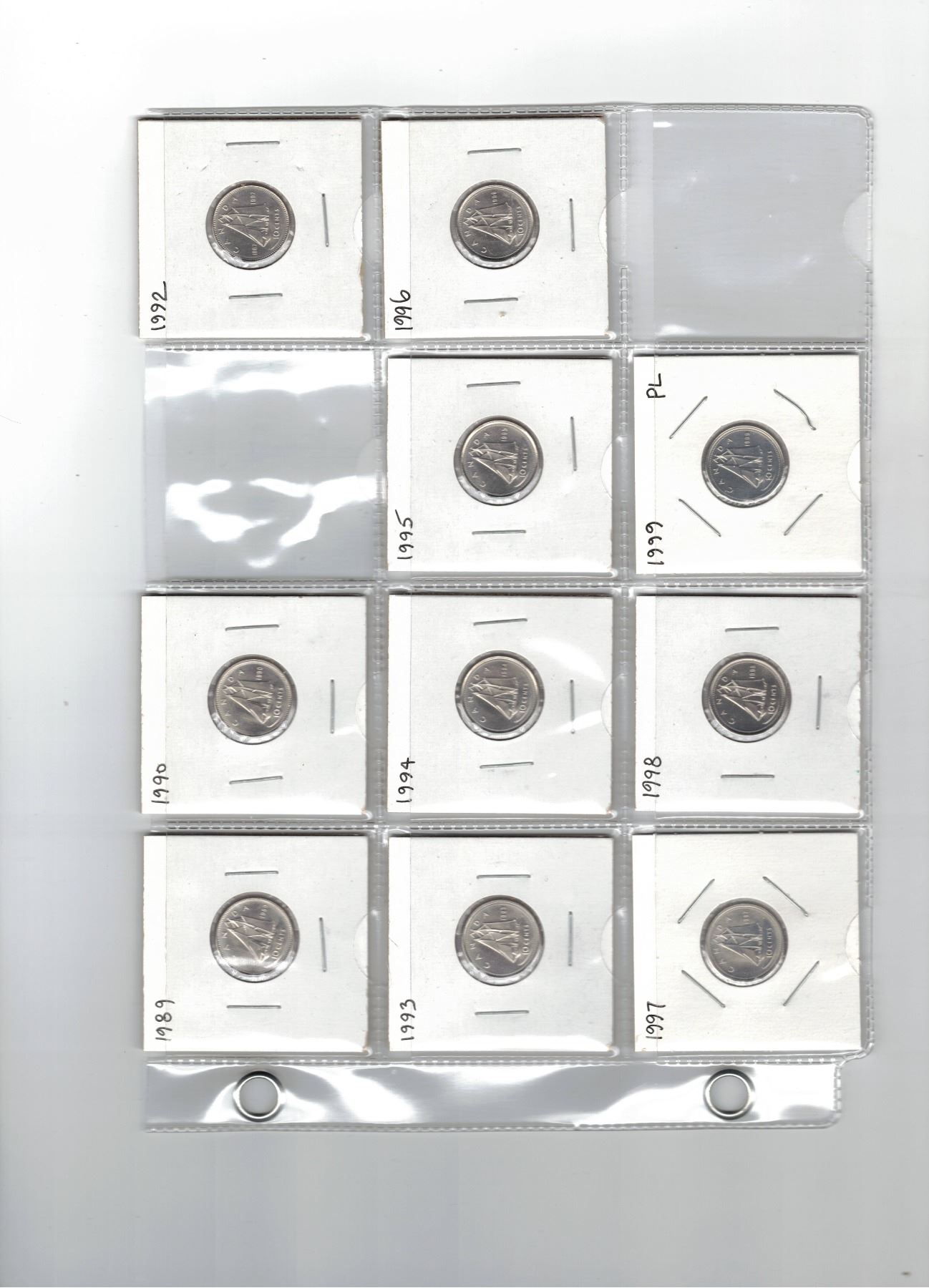 Collection of Canadian Ten Cent Coins - 1989-1990 UNC