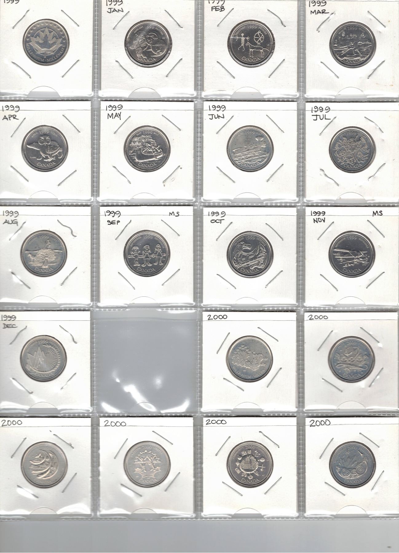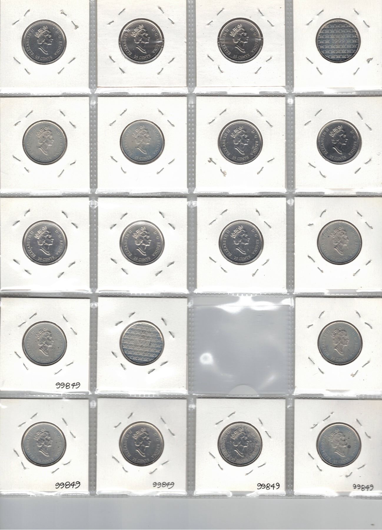Collection of Canadian Twenty-Five Cent Coins - 1999-2000