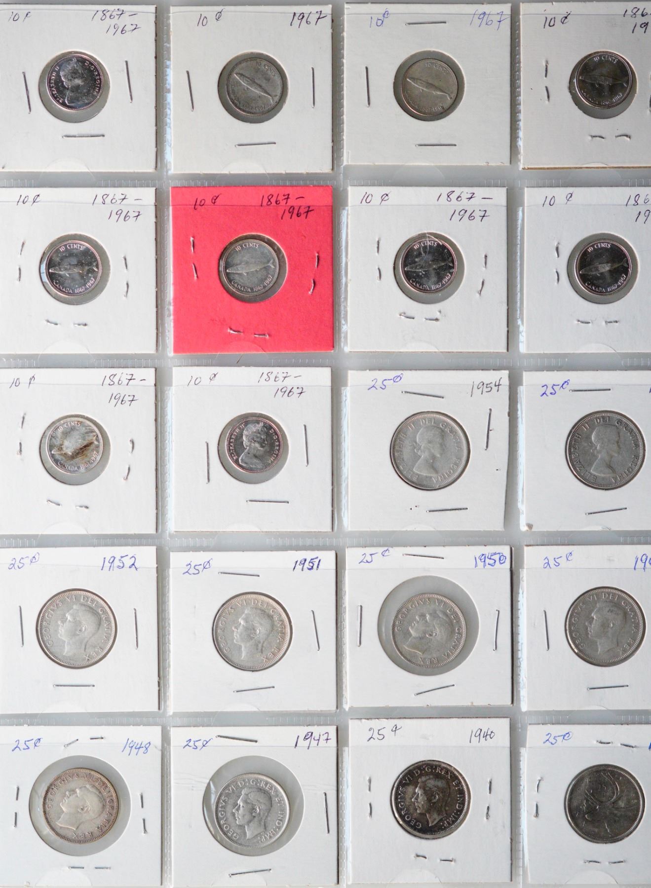 Collection of Canadian decimal coins & banknotes. 1922-1981. Over 150 pieces. Includes several silver coins.
