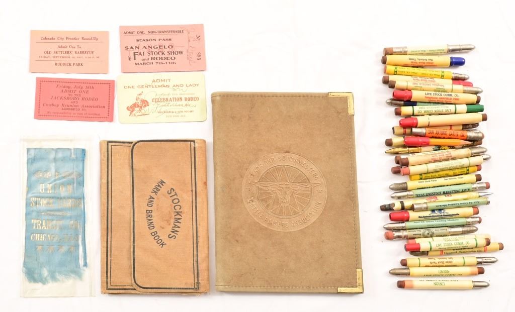 Includes 34 Vintage Advertising Bullet Pencils And Pens. Livestock Stock Yard And More.