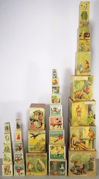 Collection of Childrens Stacking Picture Boxes. 5 sets, not all complete in good condition.