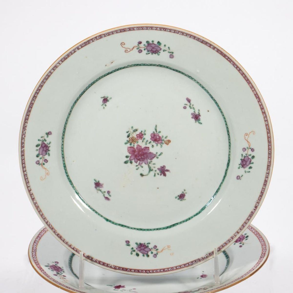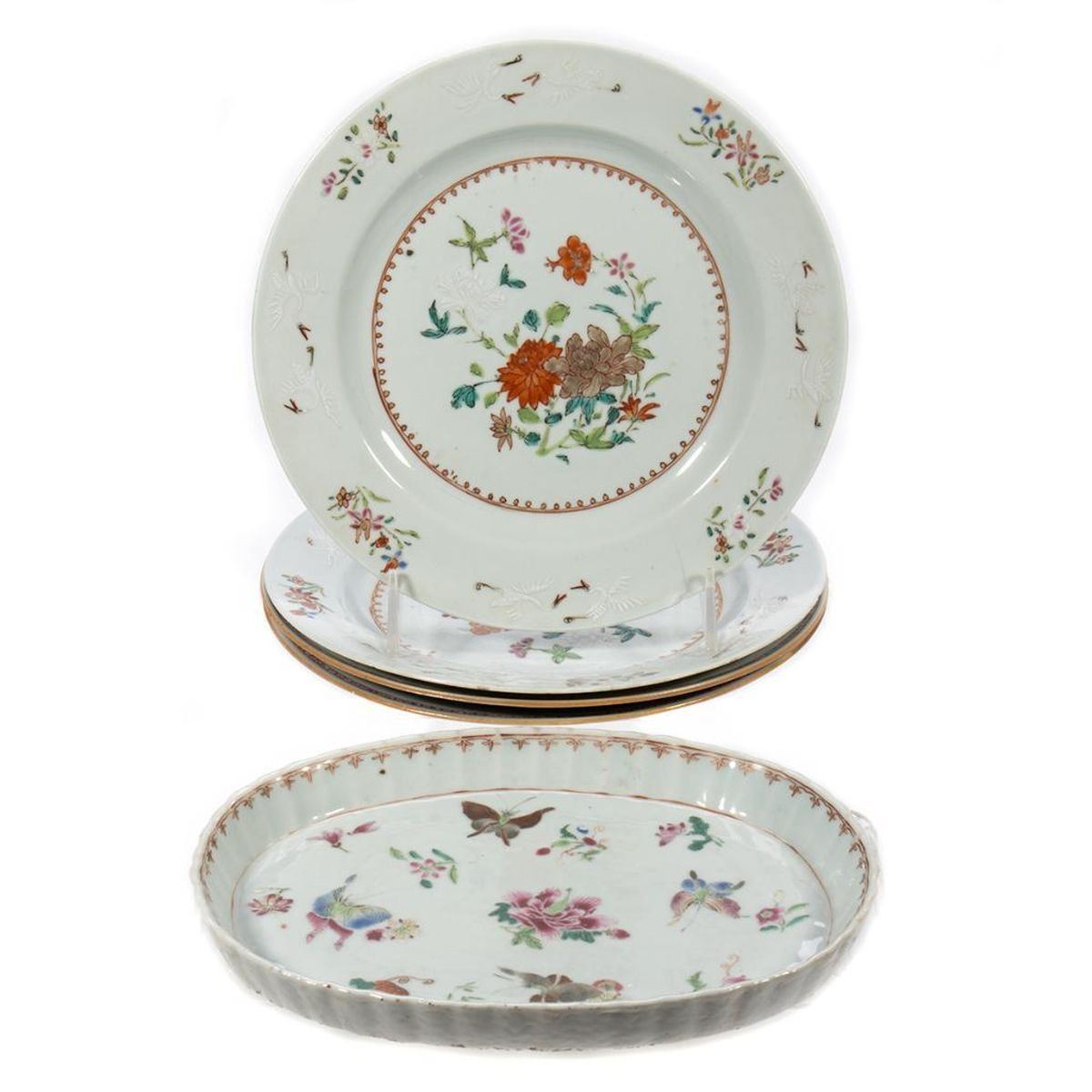 Decorated with peony and cranes. 9in diameter Condition: Small chips to rim of Crane plates