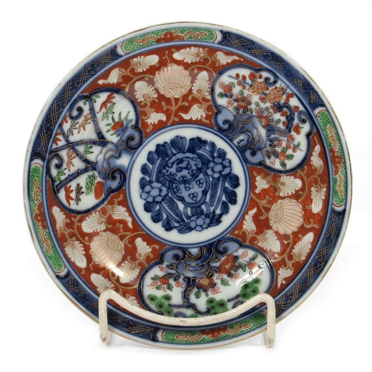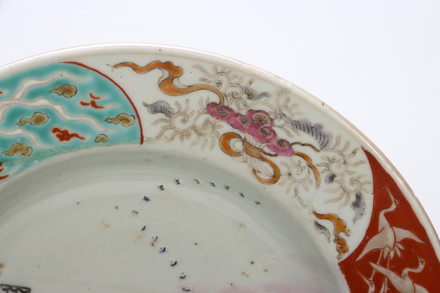 Including foiur Famille Rose Soup Plates, Three Blue & White bowls and a saucer. Condition: Repaired breaks to Soup bowls, and minor chips.