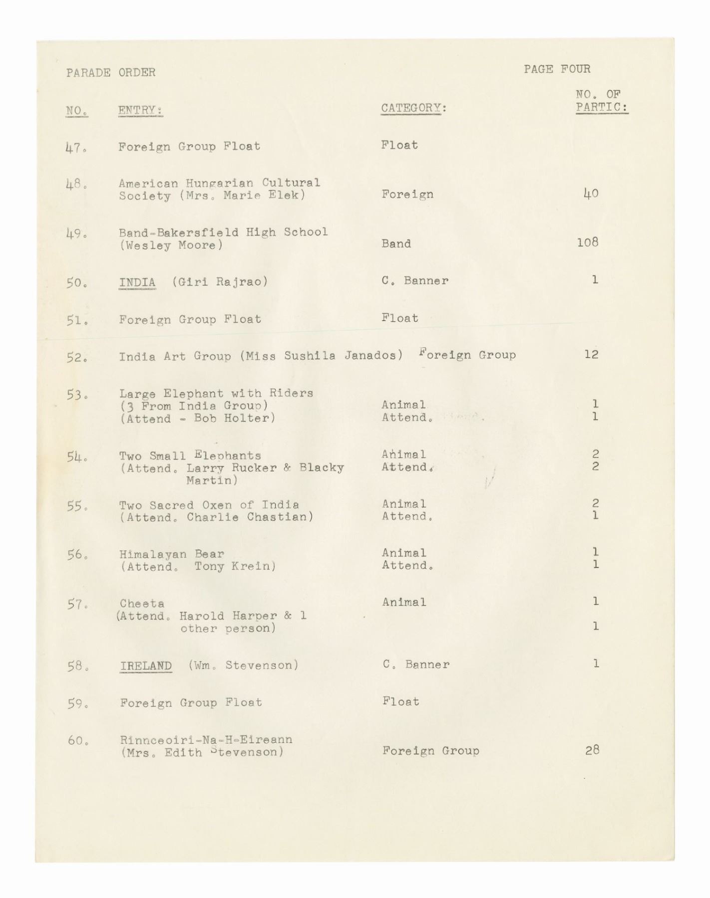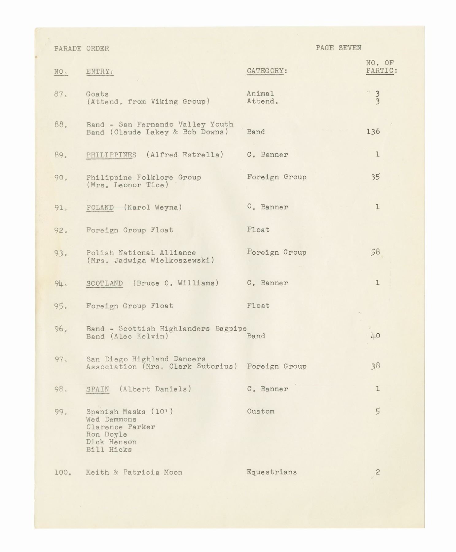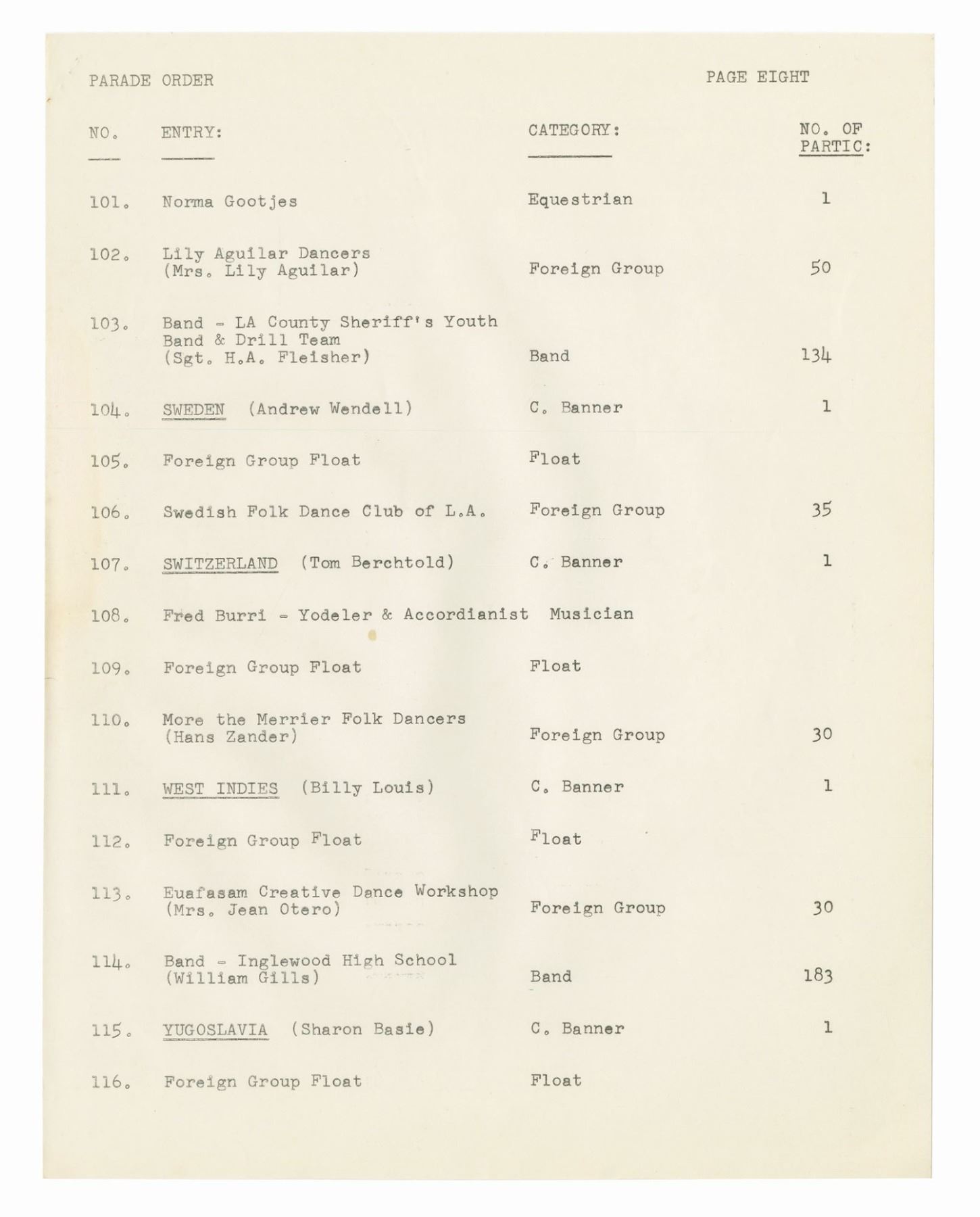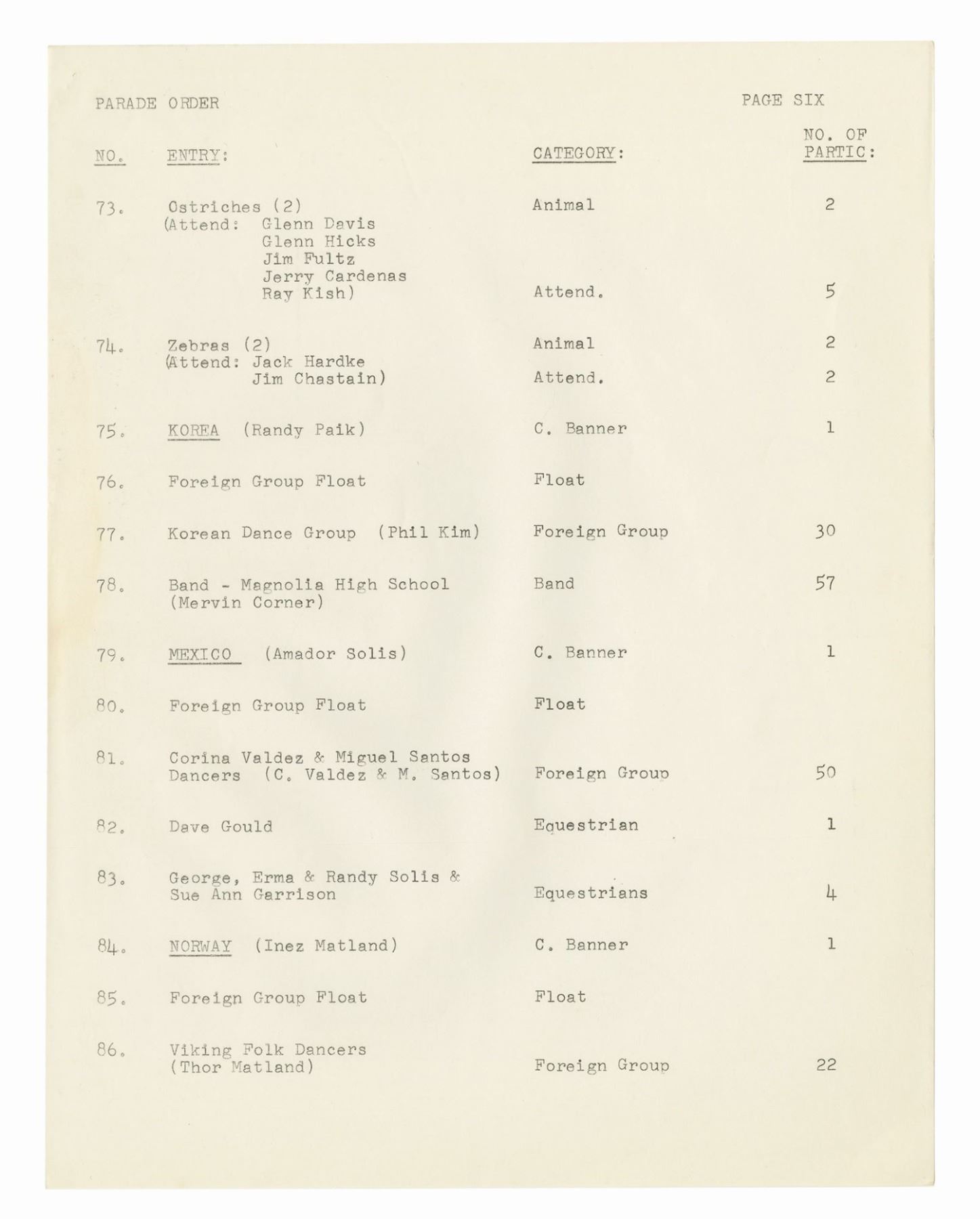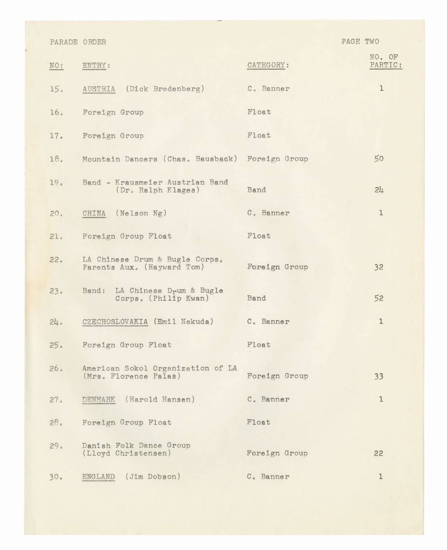 (Disneyland, 1962) A collection of WED documents used in the planning of the 1962 Christmas in Many Lands parade. The documents include an itinerary for the parade, a list and schedule for the cast member carolers, and a brownline map of the parade route. The (20) documents measure 11"x8.5" and are in good condition with some yellowing to the map, and handling wear to the pages.
