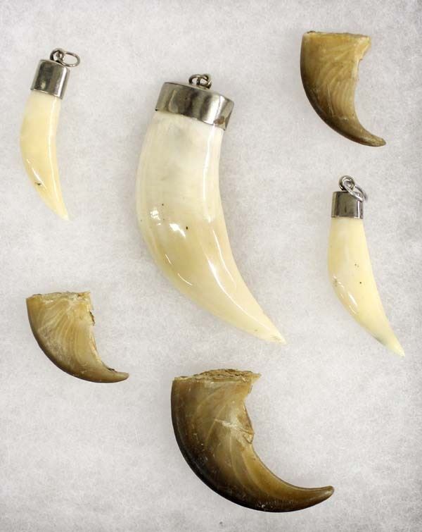Collection of Claw and Teeth Pendants, longest measures 2.5''L
