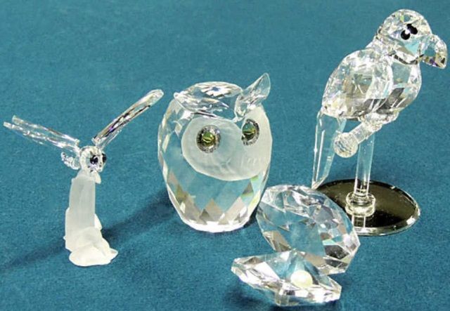 dragonfly are Swarovski; parrot and shell with pearl are an unknown maker. Swarovski's are retired.