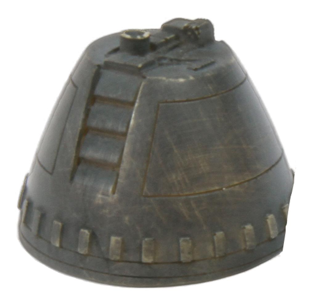 (TCF, 1983) Pair of surface elements, gun tower and turret from the Death Star in Return of the Jedi. Constructed of plastic, carved rigid foam and styrene model parts. Large panel measures 9 in. square, small panel 3 in. square, tower is 3 in. x 2 in. x 2 in.