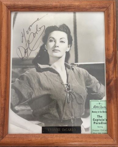 Collection of framed autograph photos that once hung on the walls of the Debbie Reynolds Dance Studio walls. Autographs from Yvonne DeCarlo, Virginia Mayo, Rod Steiger and Jack (10"x12").