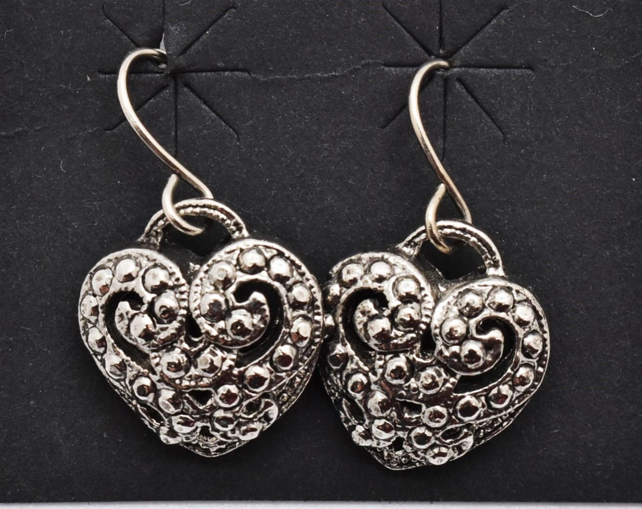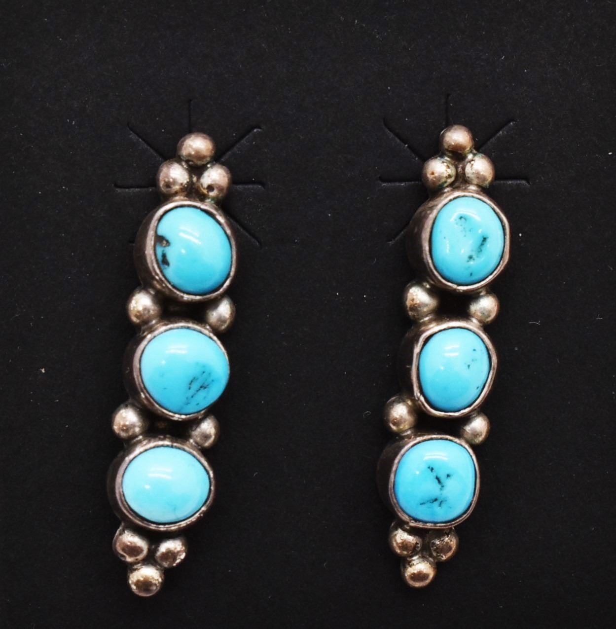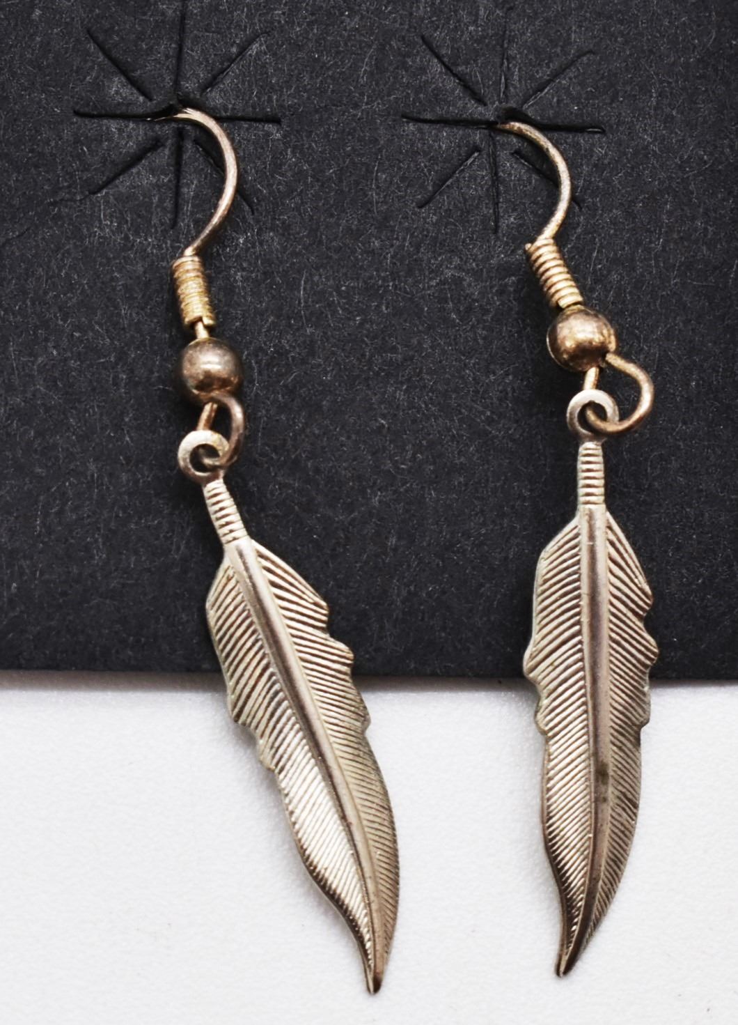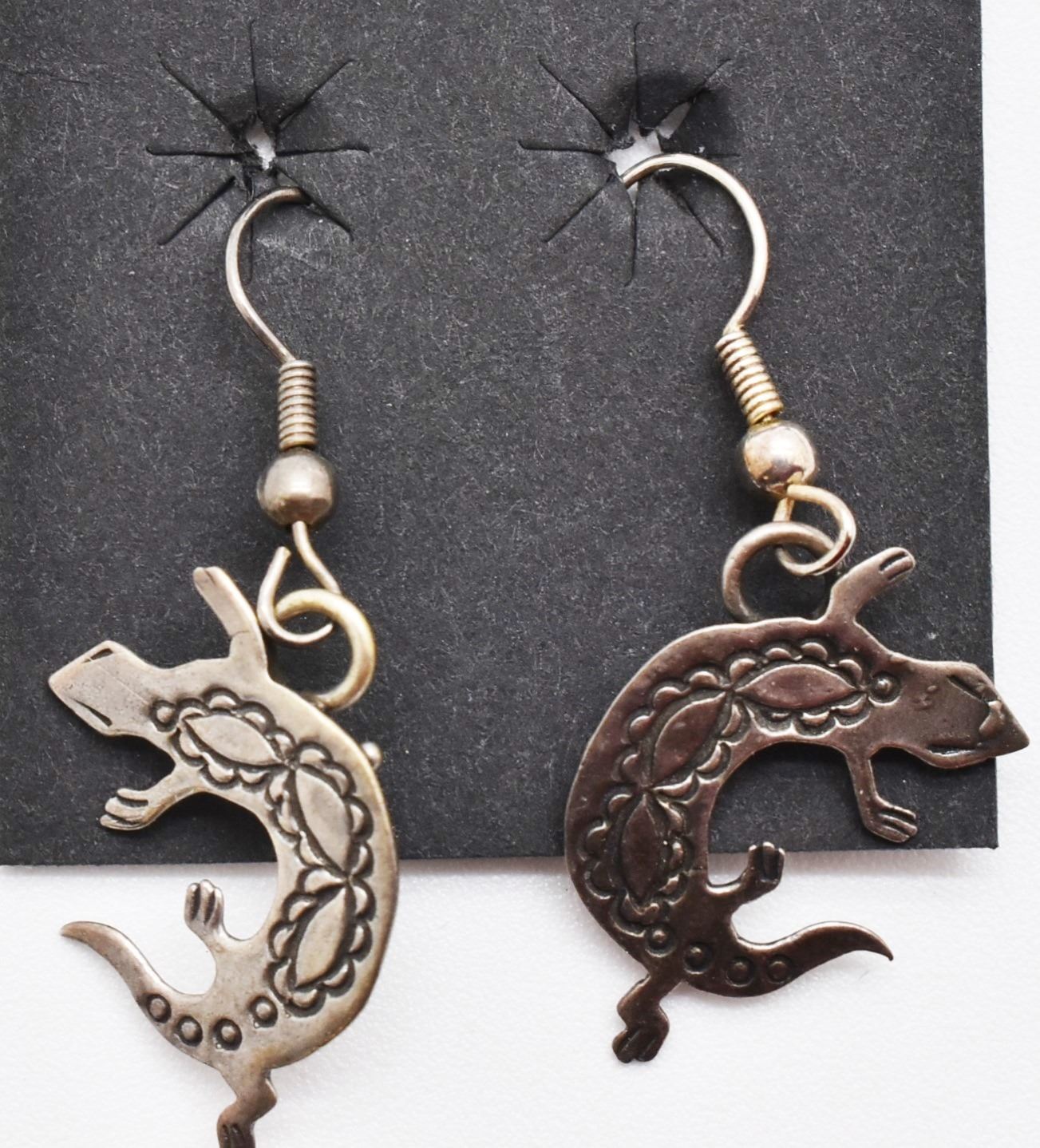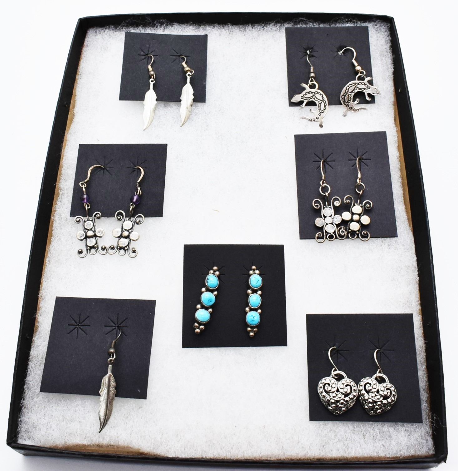 Collection of Earrings, Some Native American, includes 1. Single Navajo Silver Feather Pierced Wire Earrings 2. Silver Heart Pierced Wire Heart Earrings 3. Navajo Sterling Turquoise Post Earrings, measure 1+''L, stamped sterling 4. Silver and Amethyst Bead Butterfly Pierced Wire Earrings 5. Silver Butterfly Pierced Wire Earrings 6. Navajo Sterling Lizard Pierced Wire Earrings by Morgan Apache, hallmarked and stamped .925 7. Navajo Silver Feather Pierced Wire Earrings